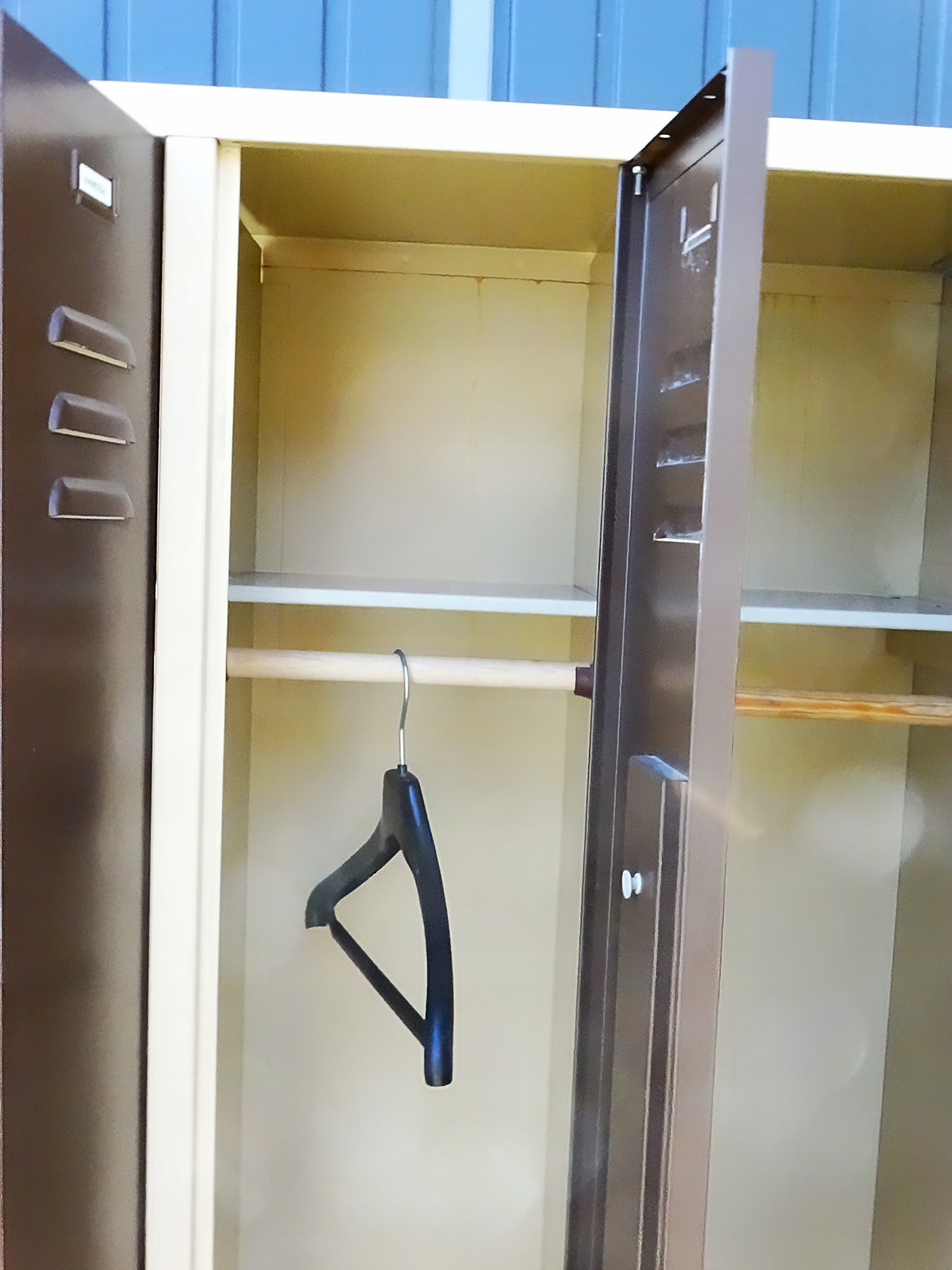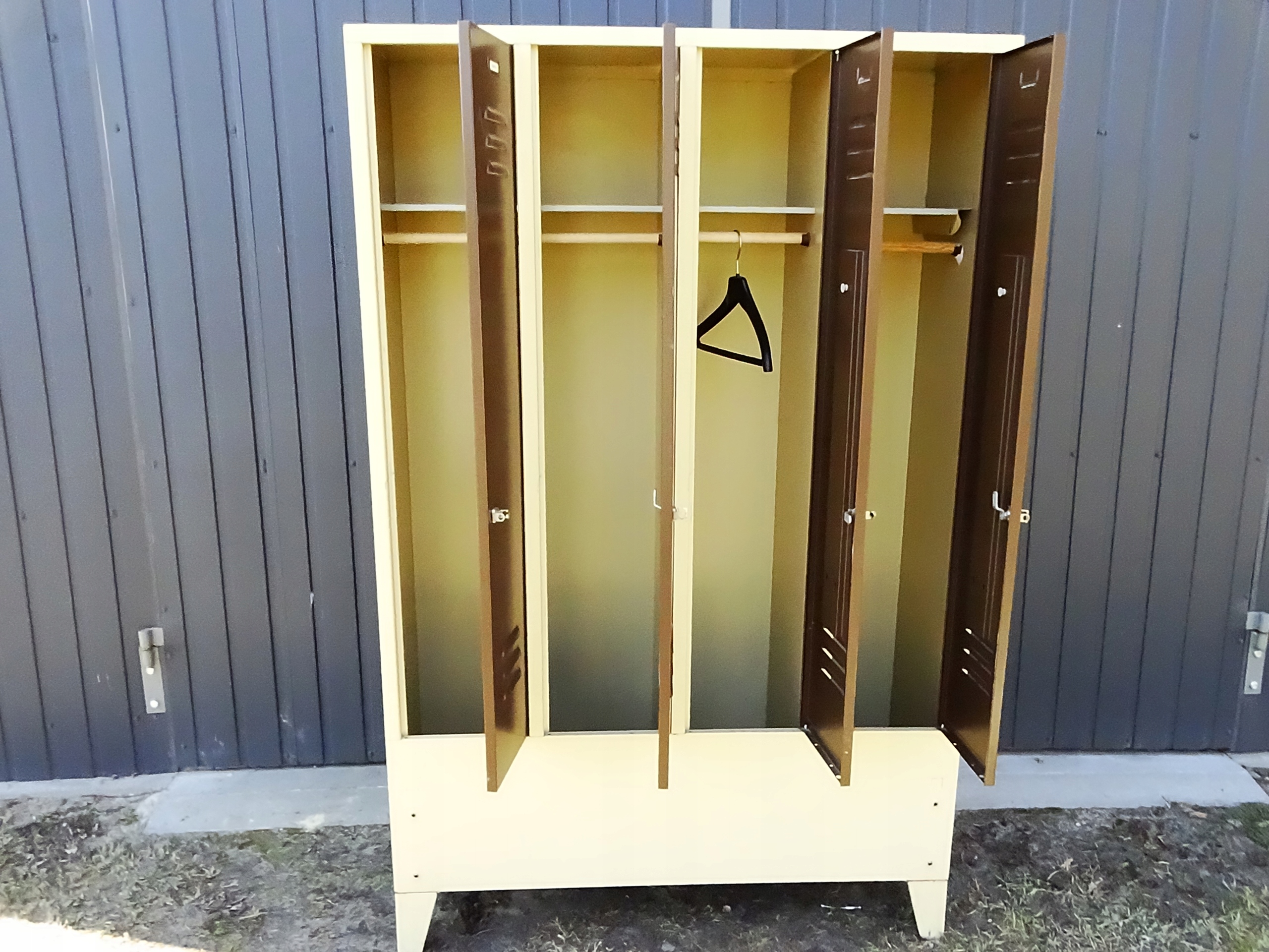 Шкаф б/у и в хорошем состоянии, как видно на фотографиях, для дальнейшего длительного использования. Мы предлагаем только два таких шкафа. Запирающийся шкафчик с полкой и вешалкой. Приглашаем вас ознакомиться с ним и, конечно же, купить. Добро пожаловать.