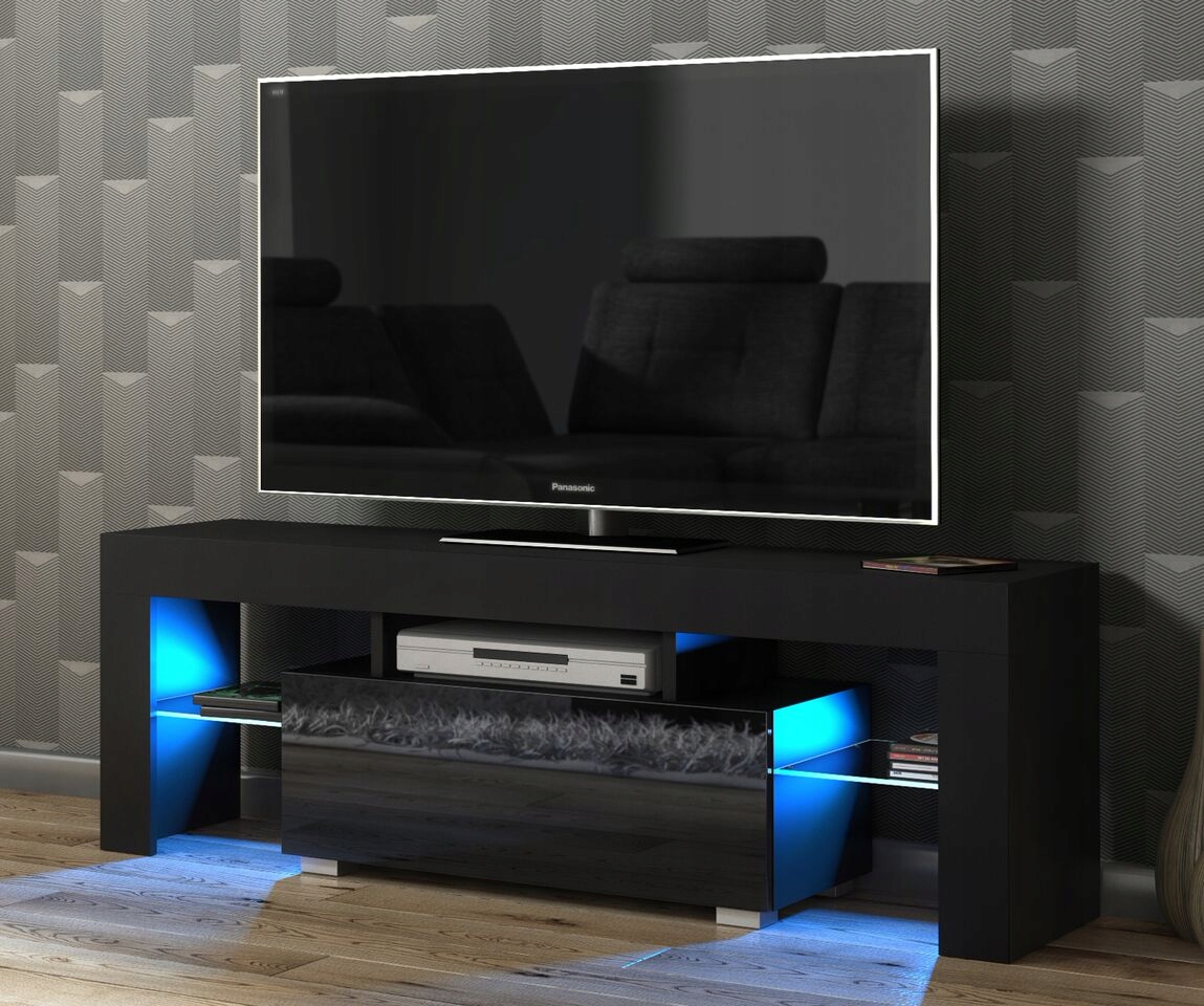 ШКАФ СТОЛ ШКАФ ЧЕРНЫЙ / ЧЕРНЫЙ ГЛЯНЦЕВЫЙ ТВ + LED