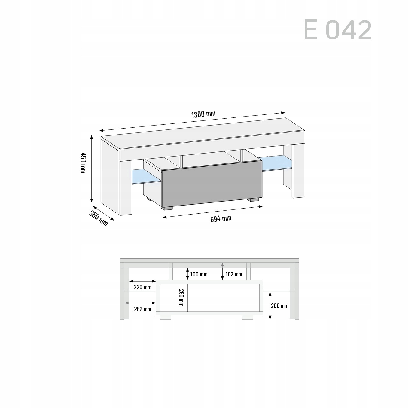 Оригинальный шкаф для телевизора, конструкция которого выполнена из качественного ламината толщиной 16 мм, обеспечивающего долговечность. Передняя часть шкафа украшена лоскутом из глянцевого МДФ, придающим шкафу элегантность. Люк дополнительно оснащен газовыми амортизаторами, которые не позволяют двери захлопываться при закрывании. Мебель имеет две открытые ниши, разделенные стеклянными полками. Ниши подсвечиваются синими светодиодами. Оригинальный дизайн шкафа делает его привлекательным, но при этом на 100% выполняет свою функцию. Ширина шкафа позволяет разместить телевизор с диагональю до 55 дюймов, а в его просторных нишах легко разместится все ваше оборудование – DVD, декодер или игровые приставки. Шкаф доступен в различных цветах. Его белый и черный варианты прекрасно впишутся в современные и дизайнерские интерьеры.