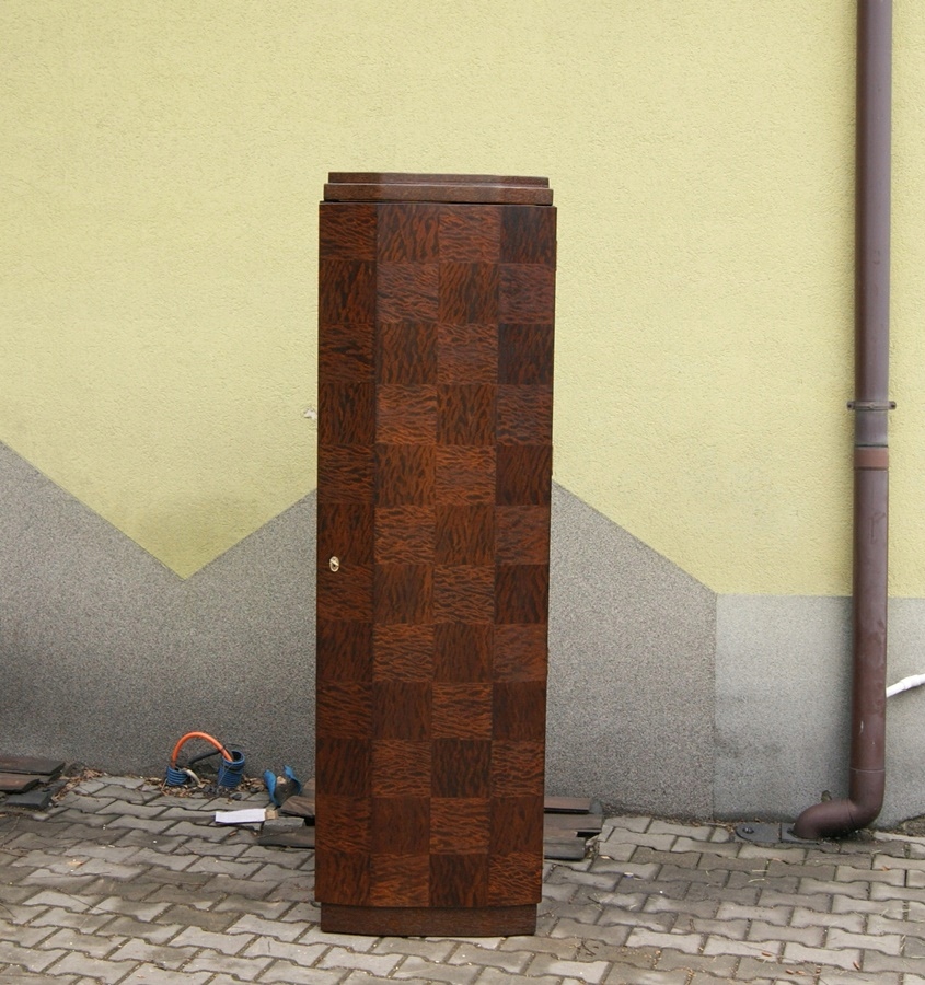 Предмет сегодняшнего аукциона — шкаф-купе межвоенного периода, выполненный из дерева с натуральным шпоном дуба и березы, со свежим ремонтом , полуматовый финиш. Свежий салон и чистый, функциональный замок. Шкаф оборудован штангой с вешалками.