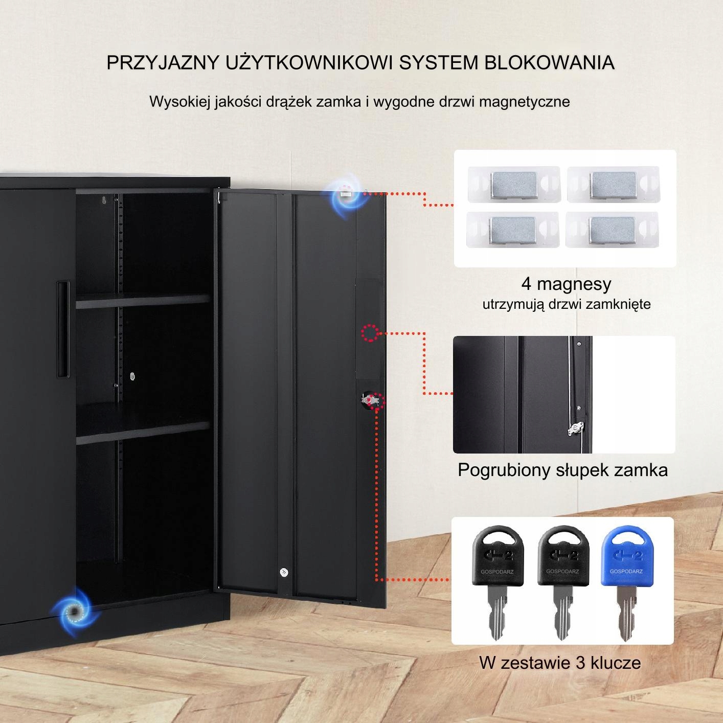 Обеспечьте безопасность своих вещей с помощью надежной системы запирания. Металлический шкаф оснащен двумя распашными дверцами с ключевым замком и тремя ключами в комплекте. Дополнительные магнитные присоски гарантируют, что дверь останется закрытой даже без использования ключа.