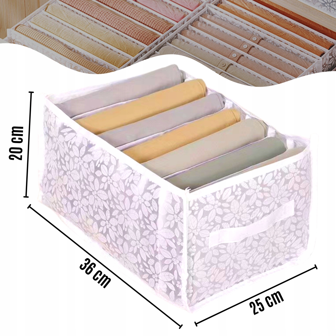 Органайзер с рельефным цветочным узором можно легко мыть в миске с теплой водой с небольшим количеством мыла или протирать влажной тряпкой. Благодаря этому вы сохраните ее в чистоте, а ваша одежда сохранит чистоту от пыли и других загрязнений, что повысит ее долговечность.