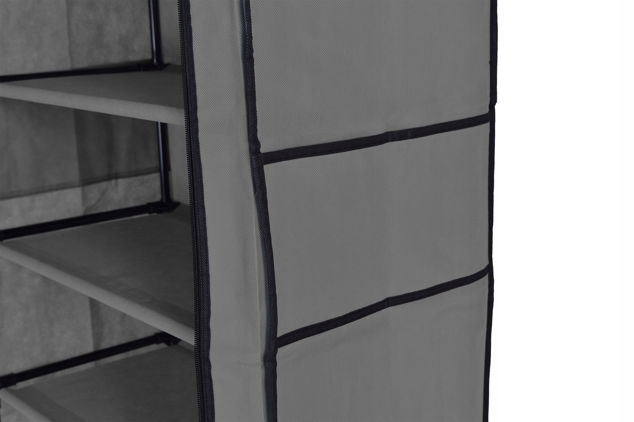 Шкаф для обуви изготовлен из стальных каркасов, образующих его каркас. Каркас покрыт дышащим материалом хорошего качества. Шкаф идеально подходит для хранения головных уборов, шарфов, перчаток, обуви или других мелких вещей. Легкая и прочная конструкция. Его можно складывать, транспортировать и перемещать в любое время. Шкаф имеет полки с водонепроницаемым флизелиновым материалом, устойчивым к механическим повреждениям и простым в уходе.