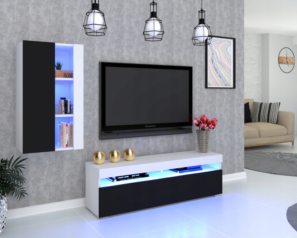 Шкаф-витрина, подвесной комод, белый глянец + светодиод