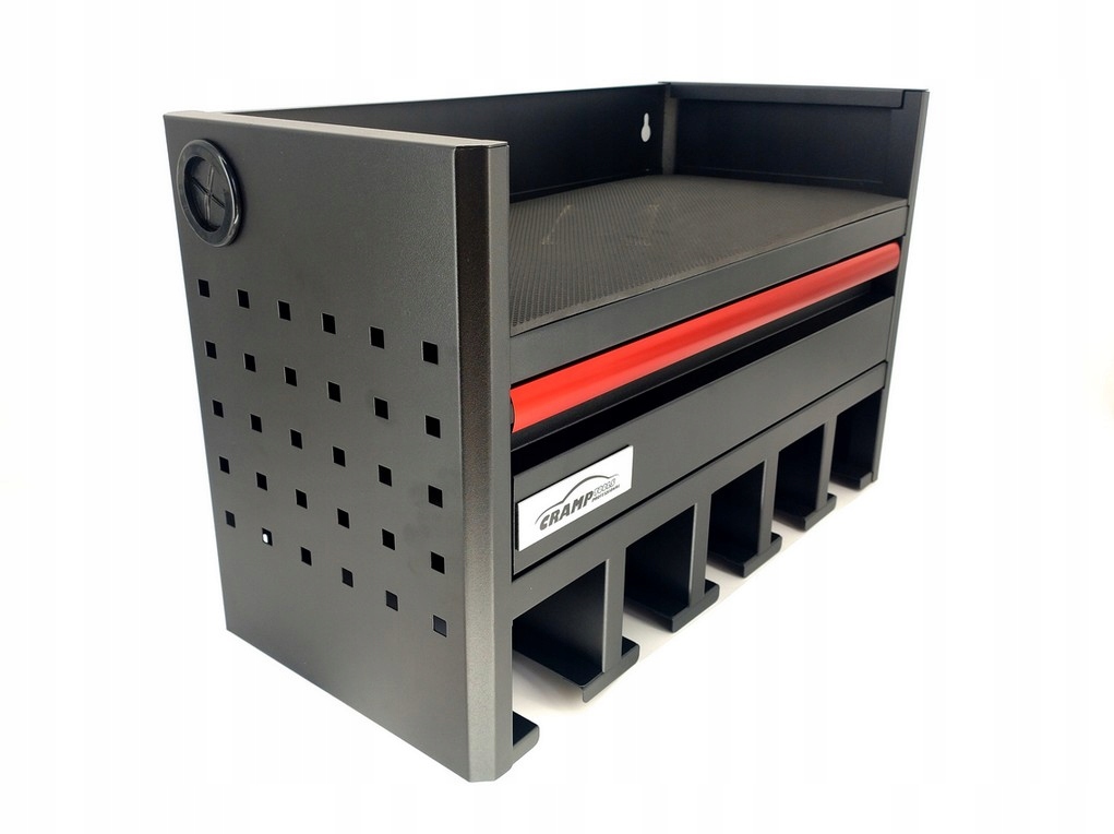 изготовлен из перфорированного листа, окрашенного в порошок и имеет дополнительные возможности для подвешивания крючков на инструментах на боковых стенках (крючки не включены).