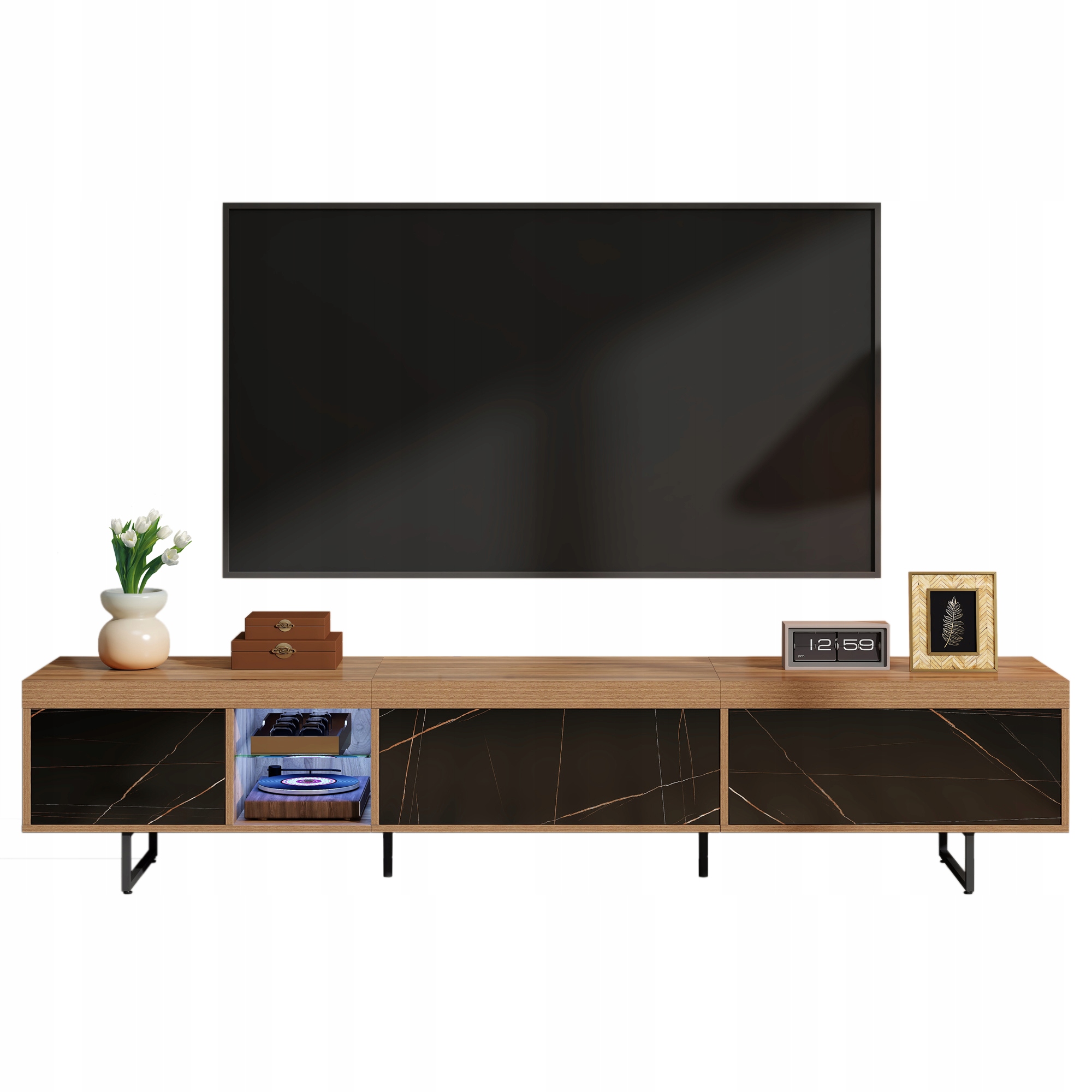 rtv шкаф, низкий с мраморной поверхностью, со стеклом и изменением цветного светодиодного освещения