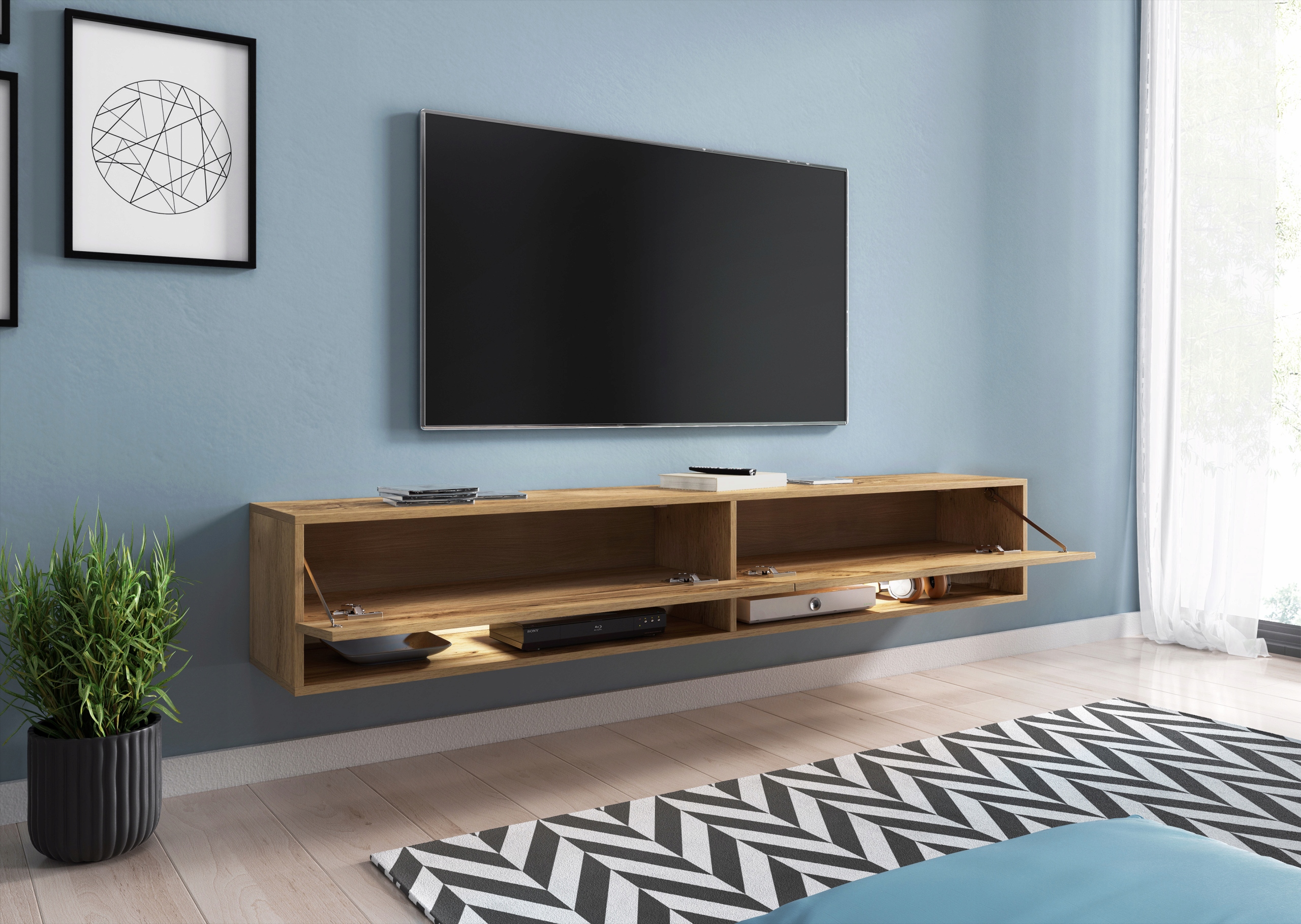 Шкаф RTV Lowboard 180 cm Wotan подвесной / напольный