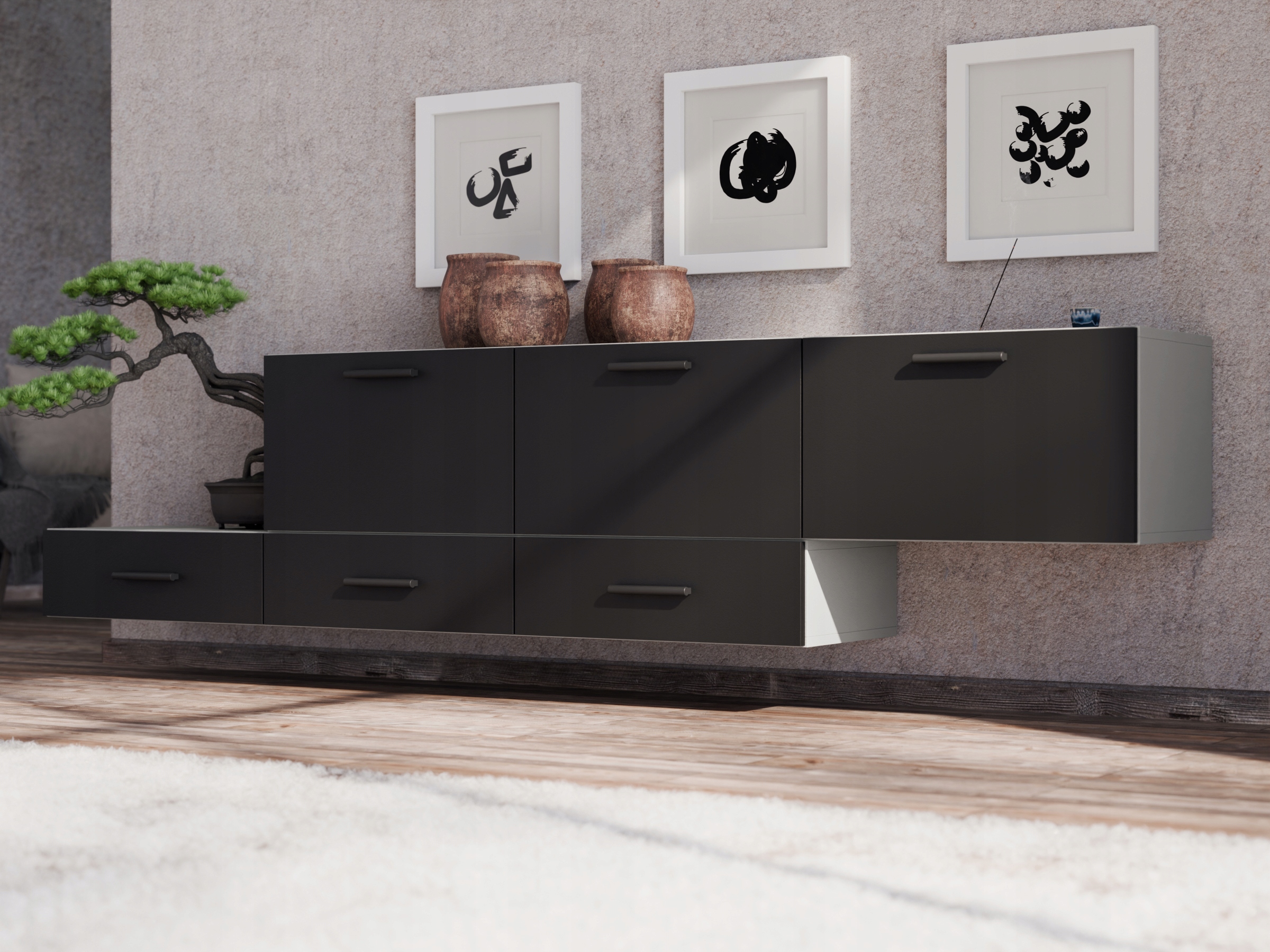 Тумба под телевизор, модульный комод, Multi-Smart 180-240, стоячий, подвесной, Черный и Бежевый