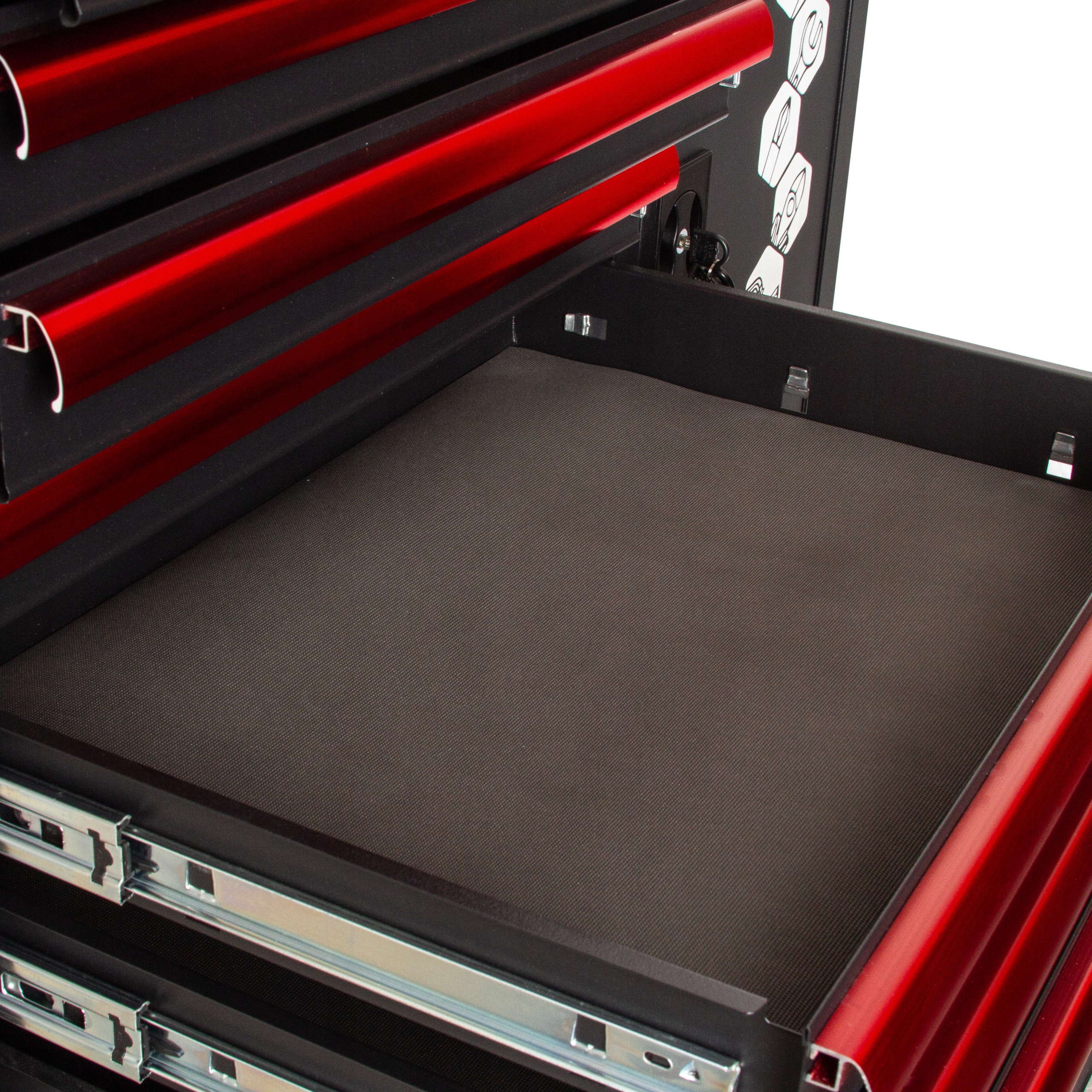 - Усиленные направляющие и шариковый механизм скольжения облегчают вытаскивание. Каждый ящик дополнительно оснащен индивидуальным замком.