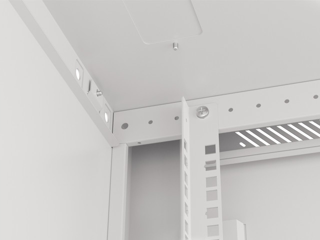 В шкафу предусмотрена возможность ввода кабелей через верхнюю и нижнюю панели. Все сделано из высококачественного проката, в комплект поставки также входят дополнительные аксессуары для крепления монтажных реек, винты М6 и заглушки входных панелей.