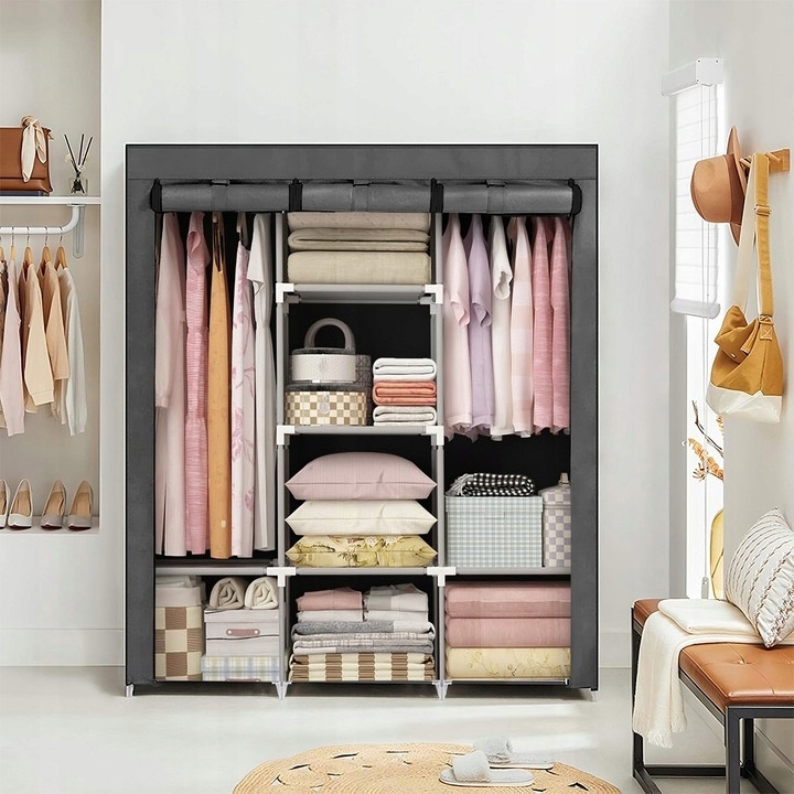 Шкаф построен на основе прочного металлического каркаса с качественными пластиковыми соединителями, что делает его прочным и быстрым в сборке - все зависит от вас. нужно несколько минут! Идеально подходит для переезда, путешествий или частой смены дома.