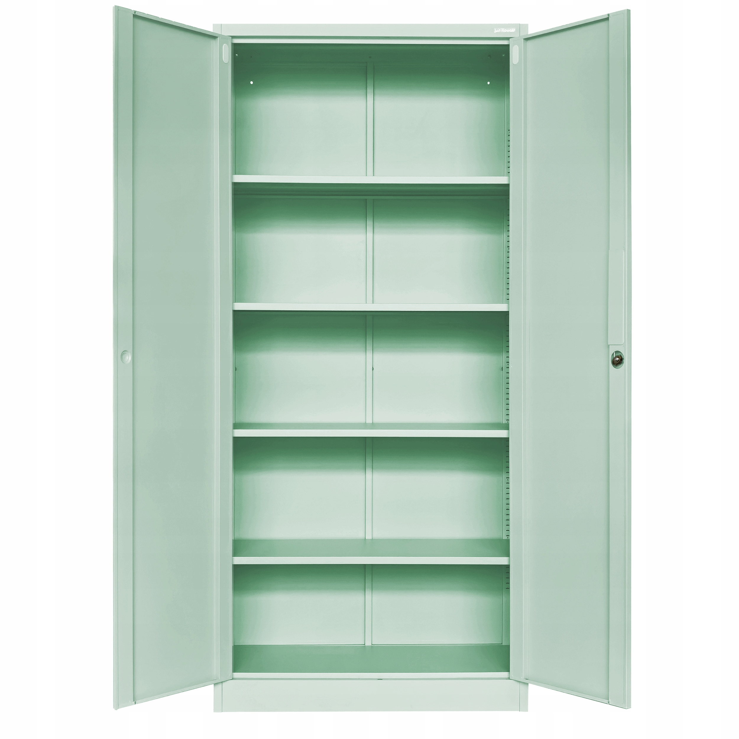 JAN H – классический двухдверный шкаф с полками внутри. Он отличается увеличенной высотой (195 см), поэтому в нем можно разместить много вещей. Решения из металла не имеют себе равных по долговечности, солидности и простоте обслуживания. Модель Jan H уникального пастельно-зеленого оттенка будет хорошо смотреться дома, в офисе, а также на предприятии.