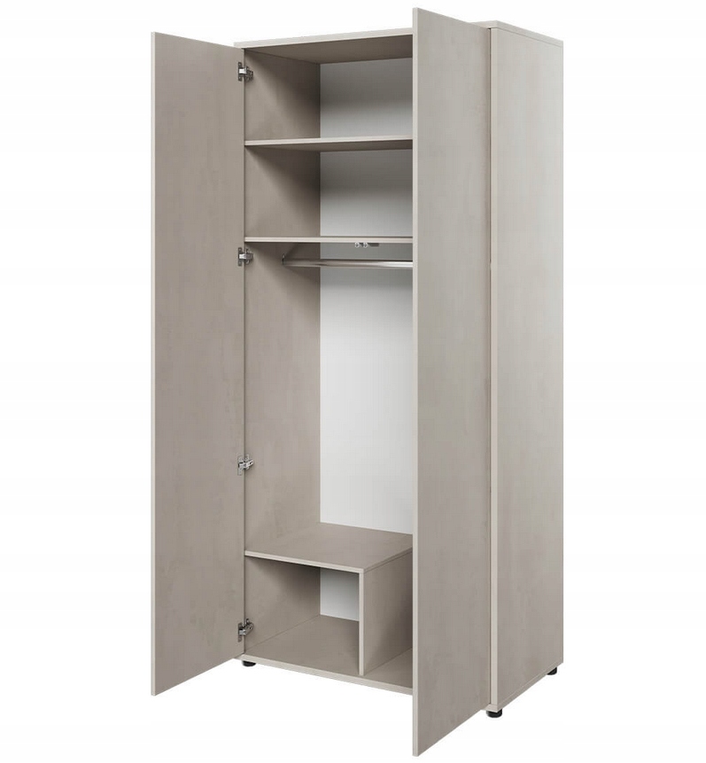 Шкаф номер один TEEN FLEX оснащен двумя широкими полками, установленными над штангой, что позволит хранить складные предметы одежды. На штангу можно повесить верхнюю одежду различной длины. В нижней части расположена узкая полка, создающая обособленное пространство.