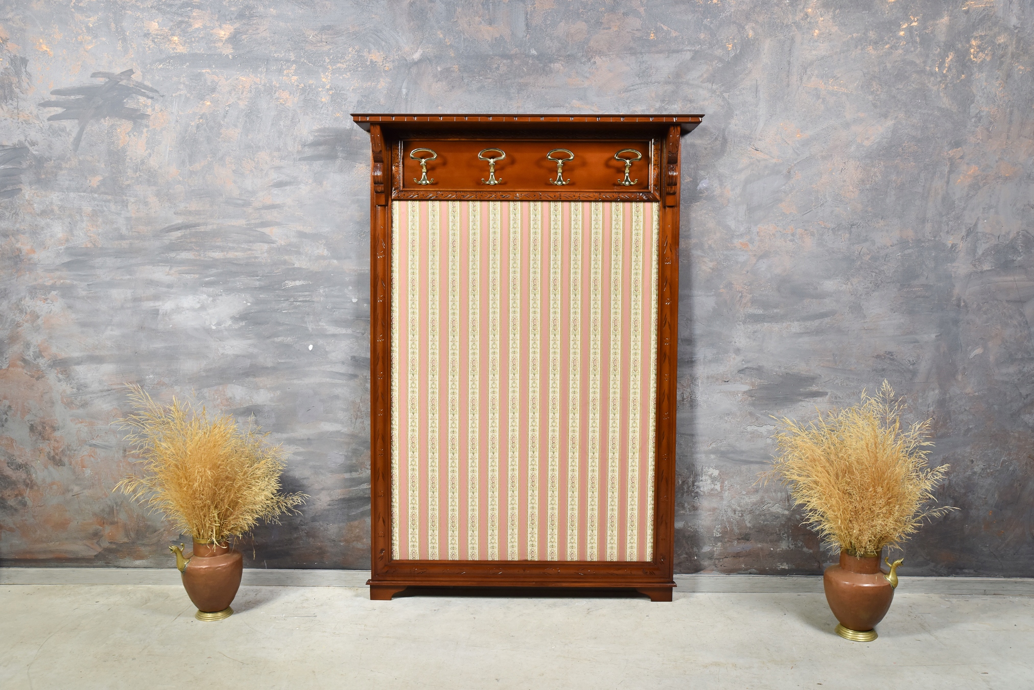 ВЕШАЛКА ДЛЯ ГАРДЕРОБА ДЛЯ ЗАЛА ОЖИДАНИЯ ИЗ МАССИВА АНТИЧНОГО ОРЕХА ПОСЛЕ РЕМОНТА