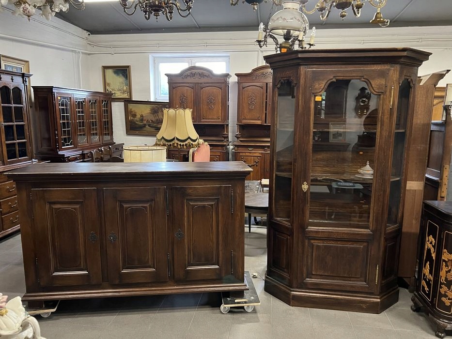 Предмет продажи — красивая дубовая витрина. Очень хорошее состояние. К нему можно купить комод (последнее фото). Возможность покупки в рассрочку. Возможен транспорт или личный самовывоз. Товар доступен в магазине в Пионках.