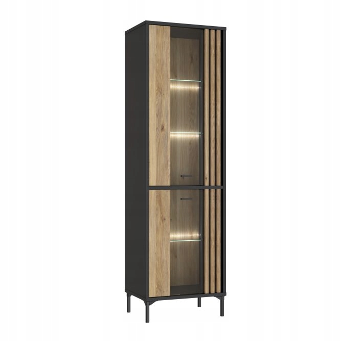 Витрина-витрина JOAKIMIS представляет собой сочетание декоров Дуб Мовелла и Черный, которые создают гармоничную и современную композицию. Мебель имеет размеры 59 х 197,4 х 41,5 см, что делает ее идеальной для маленьких и больших комнат. Витрина имеет две стеклянные дверцы, за которыми расположены четыре полки. Корпус витрины изготовлен из высококачественного ДСП, закаленное стекло обеспечивает безопасность и долговечность.