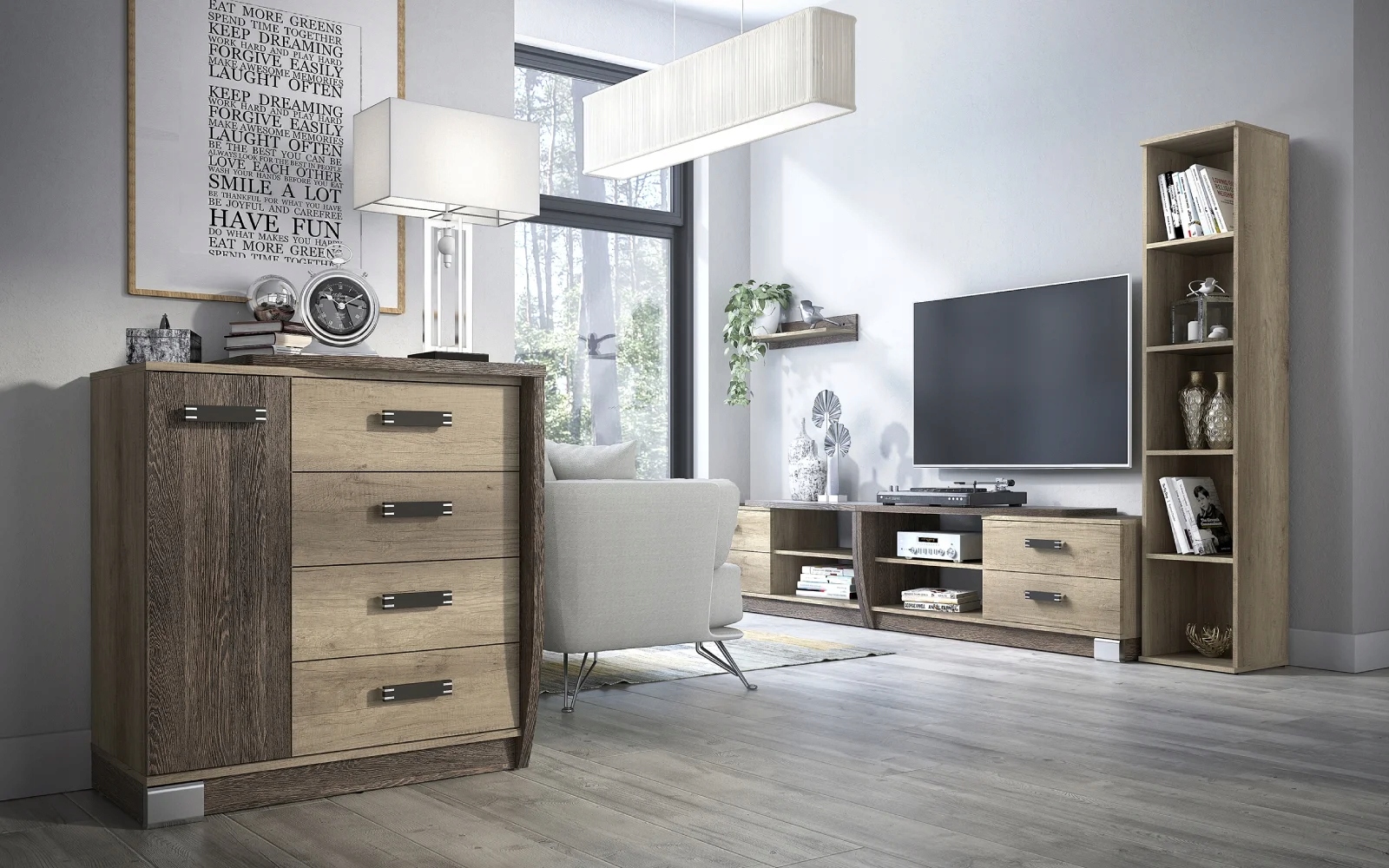Мебель из коллекции ROMERO – это уникальное сочетание цветов Дуб Каньон + Аруша. Оригинальный цвет придаст каждому интерьеру неповторимый характер. ROMERO спроектирована из высококачественного мебельного картона, что гарантирует долговечность и уверенность в том, что мебель прослужит долгие годы. Асимметричные дверцы и выразительные ручки из пластика создают единое целое, которое идеально впишется в интерьеры, оформленные в современном стиле.