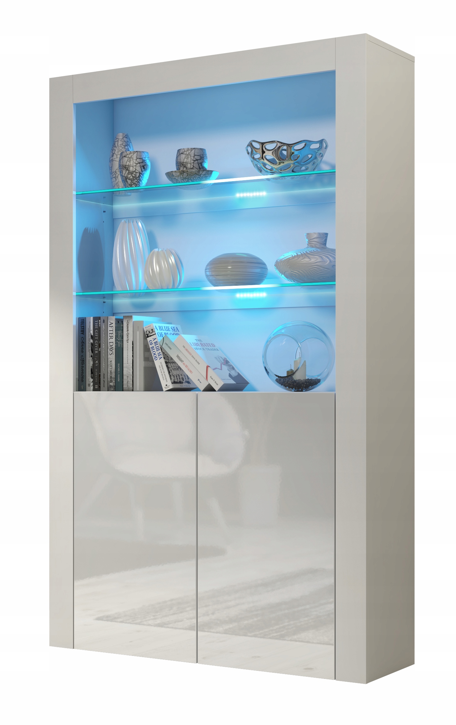 Оригинальный предмет мебели, рассчитанный на то, чтобы вместить как можно больше предметов, которые мы хотим всегда иметь в своем распоряжении на относительно небольшом этаже. пространство в нашем распоряжении.рука. Он привносит в помещение шик и немного свежести. Он позволяет использовать пространство по высоте без необходимости сверлить отверстия для навесных шкафов. Он также может служить витриной для вещей, которые важны для нас и которые мы не хотели бы потерять или уничтожить. Мебель имеет дверцы из глянцевой плиты МДФ и открытое пространство, разделенное двумя стеклянными полками. Двери открываются с помощью системы push to open. Открытые полки могут быть дополнительно освещены светодиодами, что подчеркнет значимость нашей выставки (светодиодное освещение в комплект не входит). Вся наша мебель доступна в нескольких цветах, поэтому мы можем создавать единые комплекты или мебельные системы в нескольких оттенках.