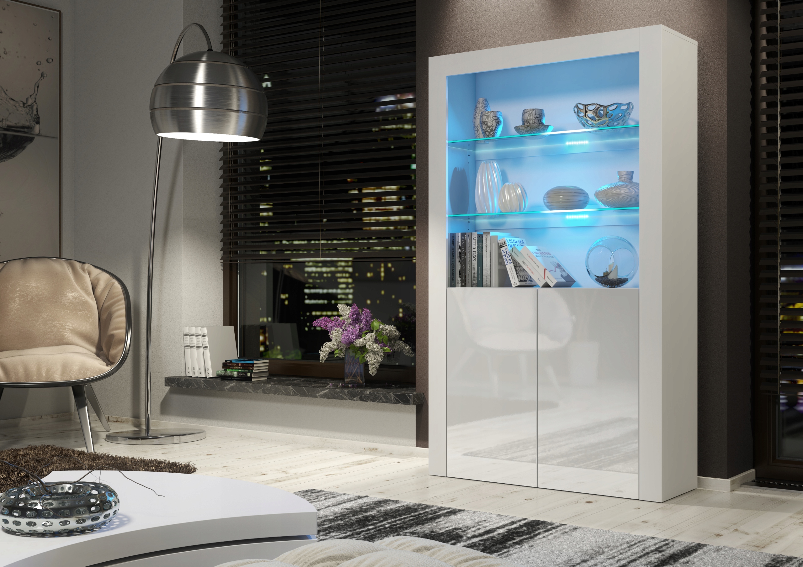 ВИТРИННЫЙ ШКАФ ШКАФ БЕЛЫЙ / БЕЛЫЙ ГЛЯНЦЕВЫЙ E114