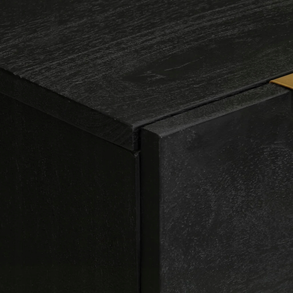 - Стабильный и прочный материал: деревянный материал, сплошное дерево манго и латунные ножки, которые дают стабильность и спокойный стиль