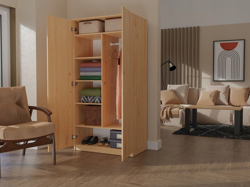 7 полок и место для развешивания одежды, легкая, простая форма и минималистичный дизайн сделать гардероб максимально функциональным и эстетичным.