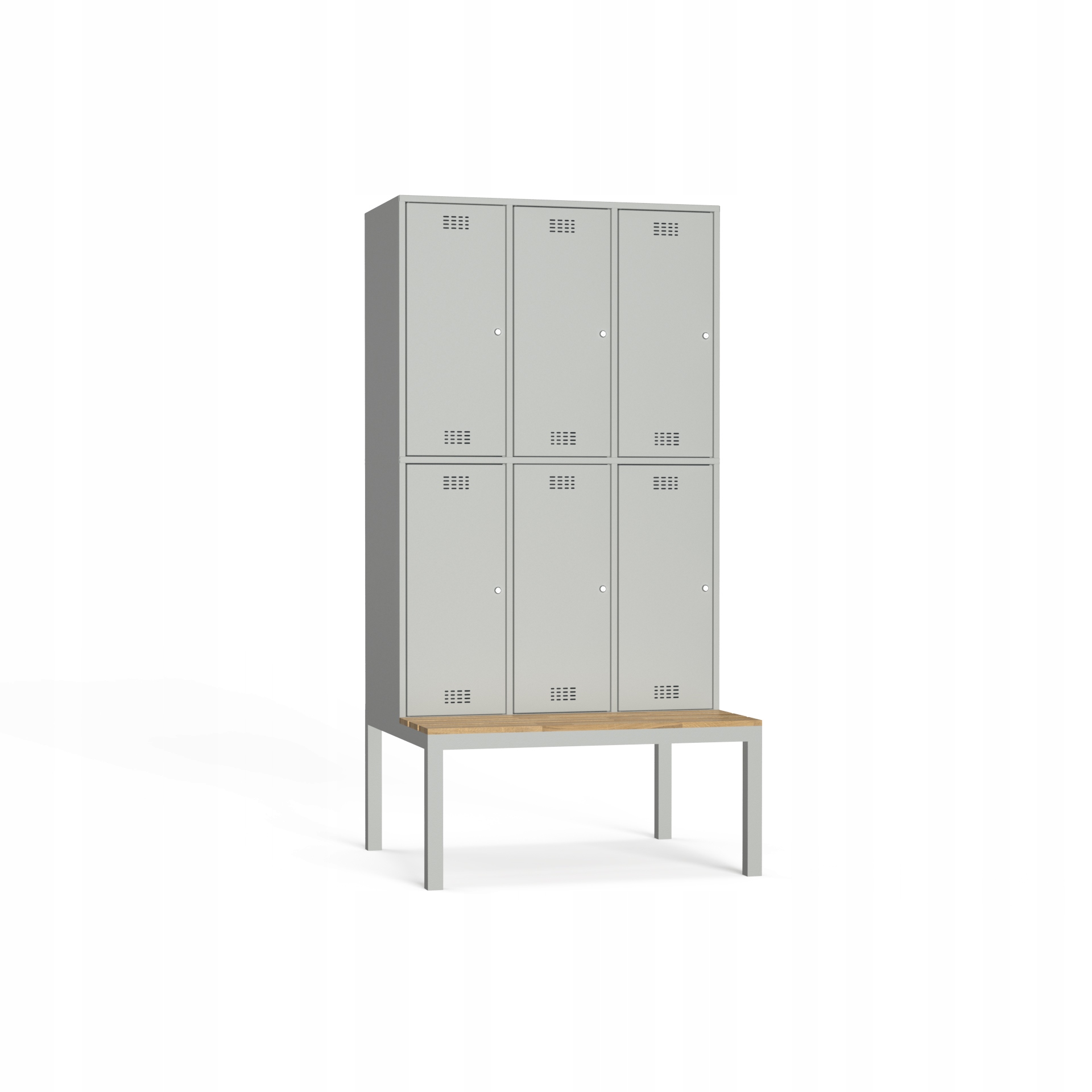 Шкаф для школьной одежды с 6 отделениями и скамейкой 2х3