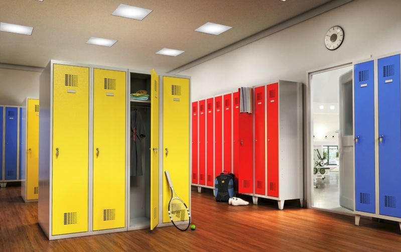 Шкаф - общественный, рабочий, гардеробный, двухдверный - шкаф двухкамерный со скамейкой.