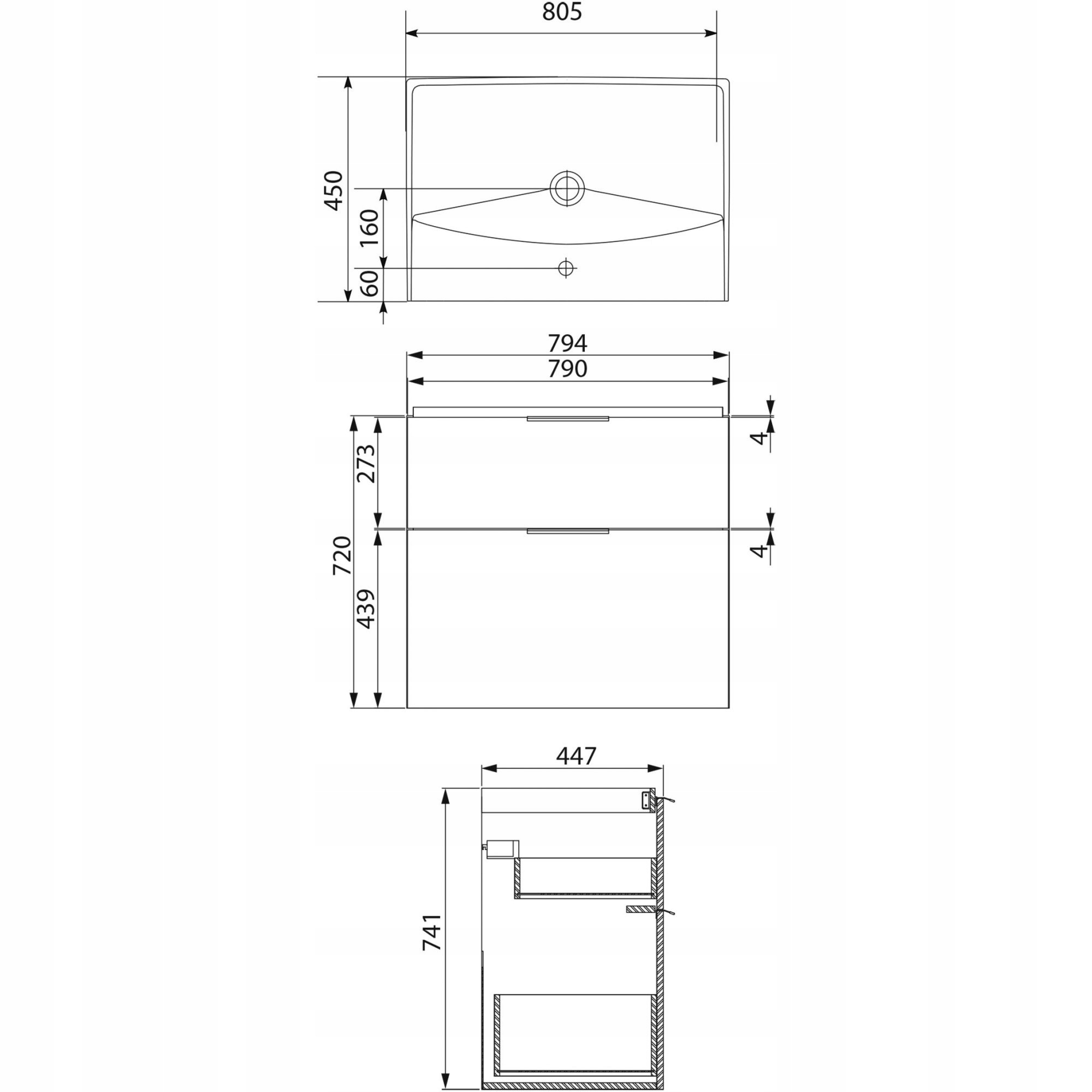 В комплект входит подвесная тумба под умывальник CITY by Cersanit 80 и мебельный умывальник CITY by Cersanit 80. Фасад и корпус тумбы выполнены из ДСП белого цвета. Шкаф оснащен бесшумной системой закрывания «soft close» и двумя вместительными ящиками. Функциональный и элегантный мебельный умывальник CITY by Cersanit 80 имеет широкую поверхность для хранения, центральное отверстие для фурнитуры и перелив.