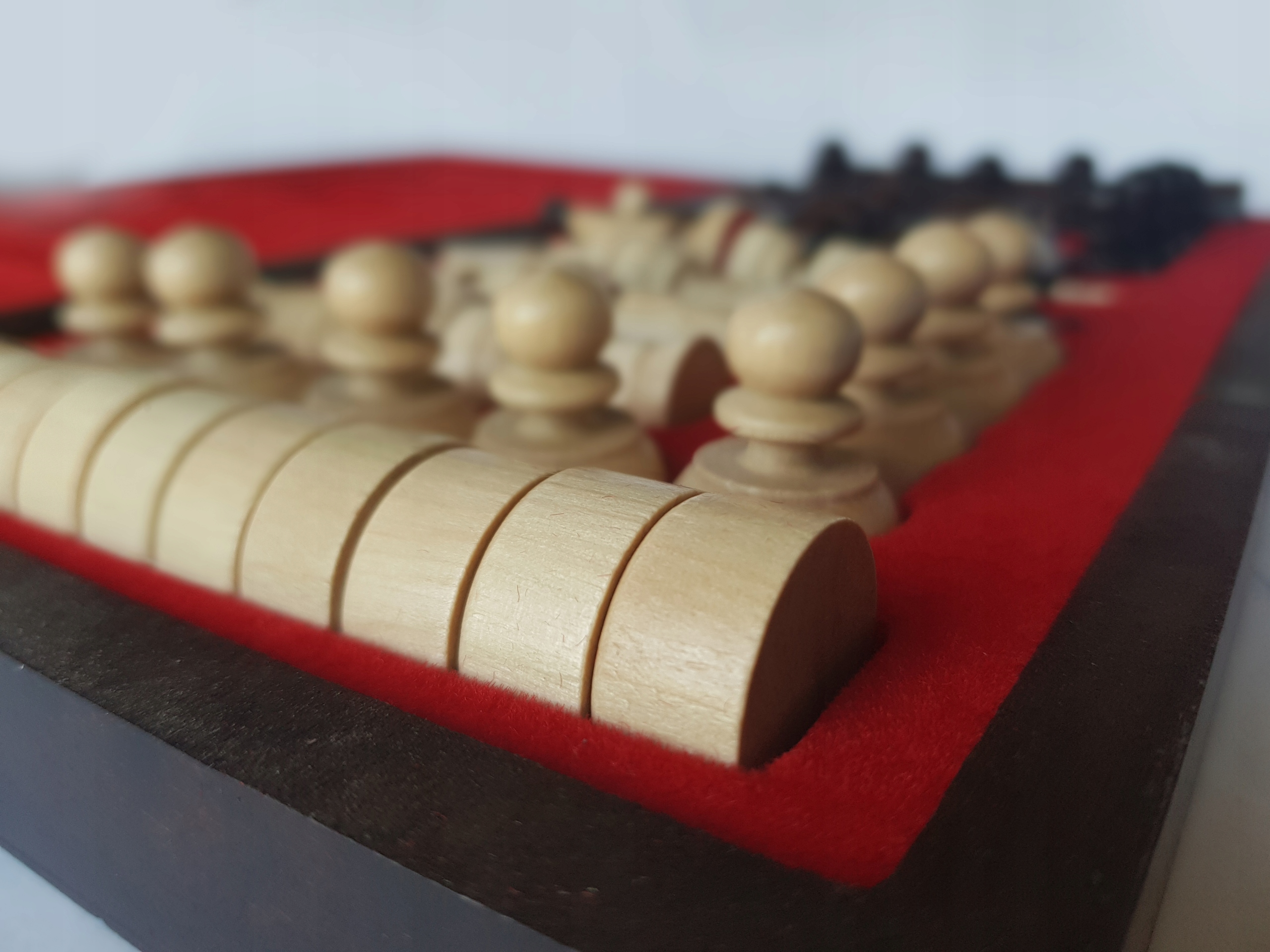 - Шахматы детали изготовлены из высококачественного граба и проклеены красным флокированным материалом.