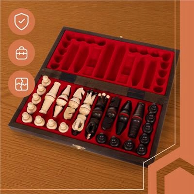 Шахматы из натуральной древесины граба – это не просто игра – это стильный элемент интерьера и идея для уникального подарка. Закрытая шахматная доска в виде чемодана со вкладышами обеспечивает удобное хранение и сохранность фигур. Полуматовый лак, классические цвета и изысканные детали с первого хода придают игре престижный характер.