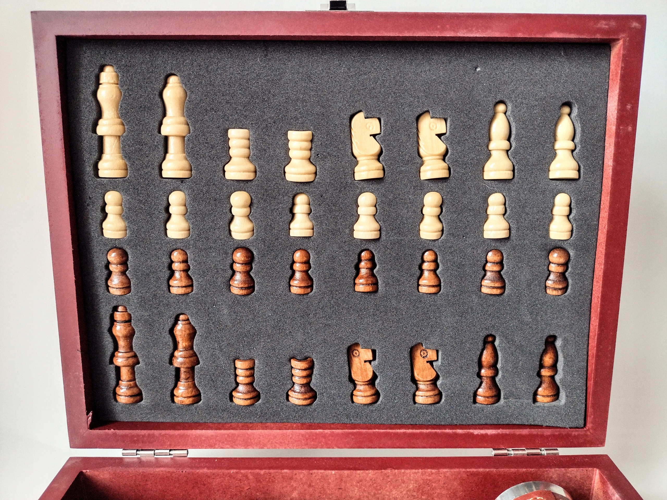 Элегантный подарочный набор в деревянном чемоданчике - идеальный подарок любителю шахмат!