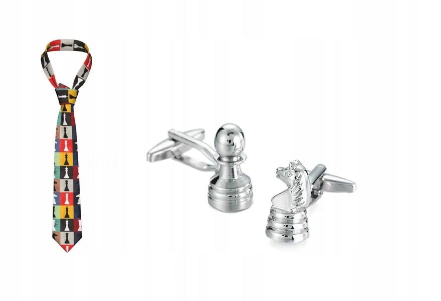 Элегантный набор: галстук и запонки - отличный выбор для всех, кто хочет объединить любовь к шахматам с элегантным, вневременным стилем. Идеальный подарок для страстного шахмата, который ценит уникальную внешность и детали.