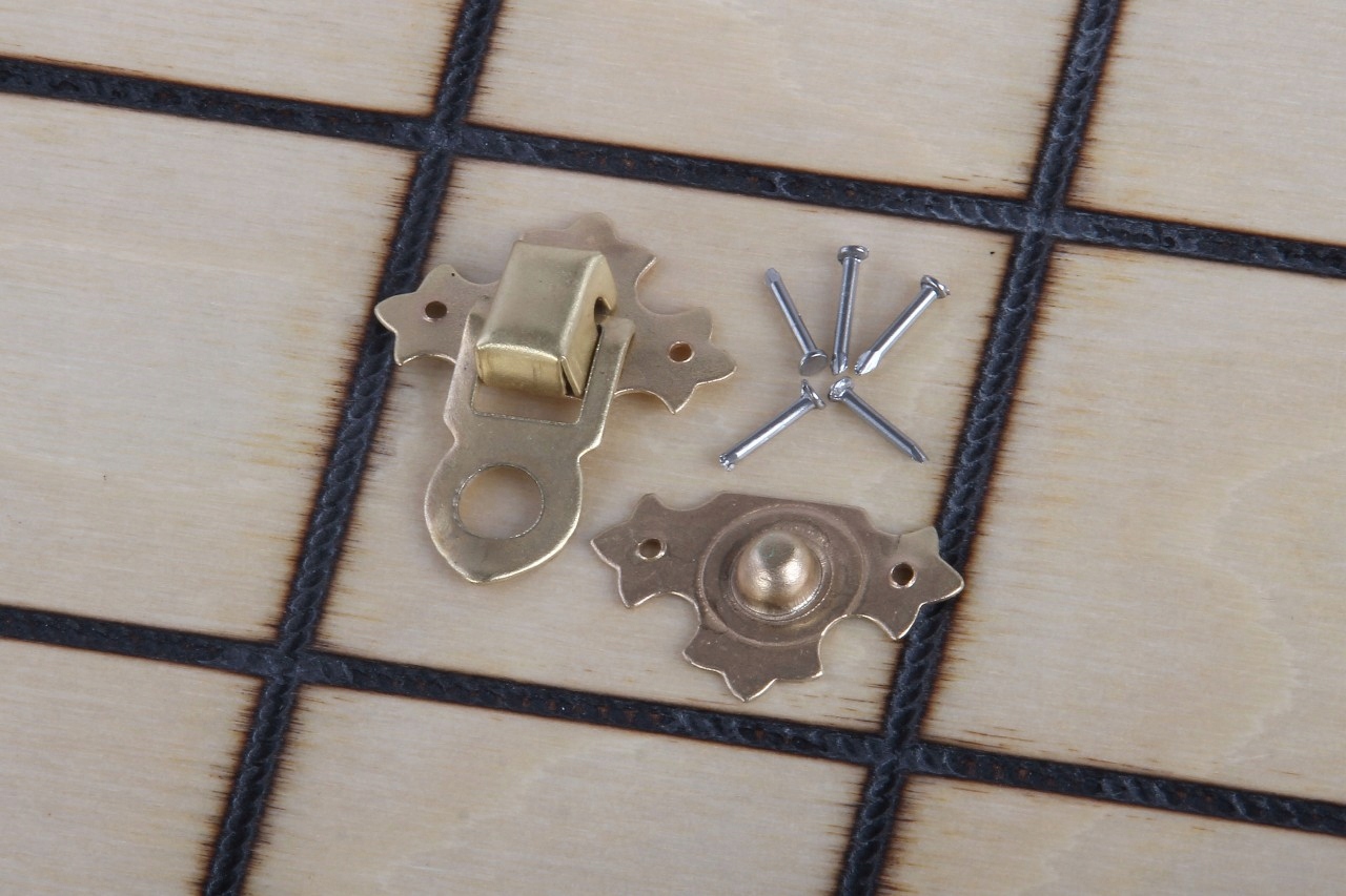 2. Деревянная шахматная шкатулка с необработанными деревянными полями для самостоятельного приготовления вместе с защелкой для самоуверенной ассемблемы.