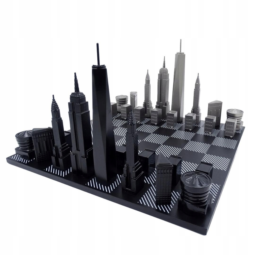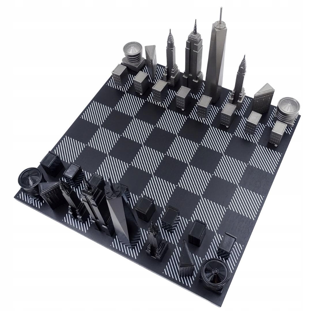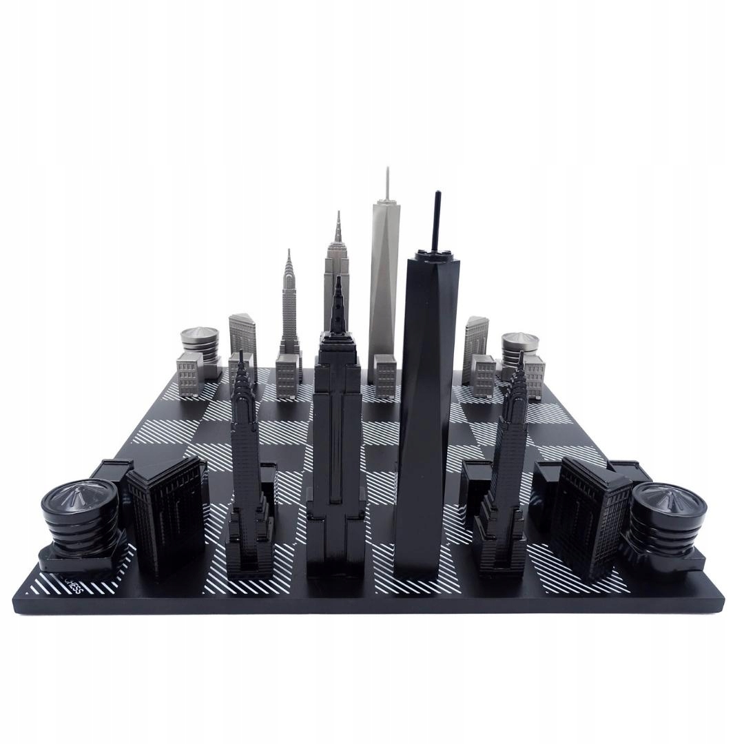 Дизайнерские шахматы Skyline New York – продукт, который непременно понравится всем любителям шахмат и эксклюзивных украшений. Шахматные фигуры представляют самые известные здания Нью-Йорка, такие как Эмпайр-стейт-билдинг, Крайслер-билдинг и Всемирный торговый центр. Каждый элемент комплекта отличается неповторимым стилем и элегантностью.