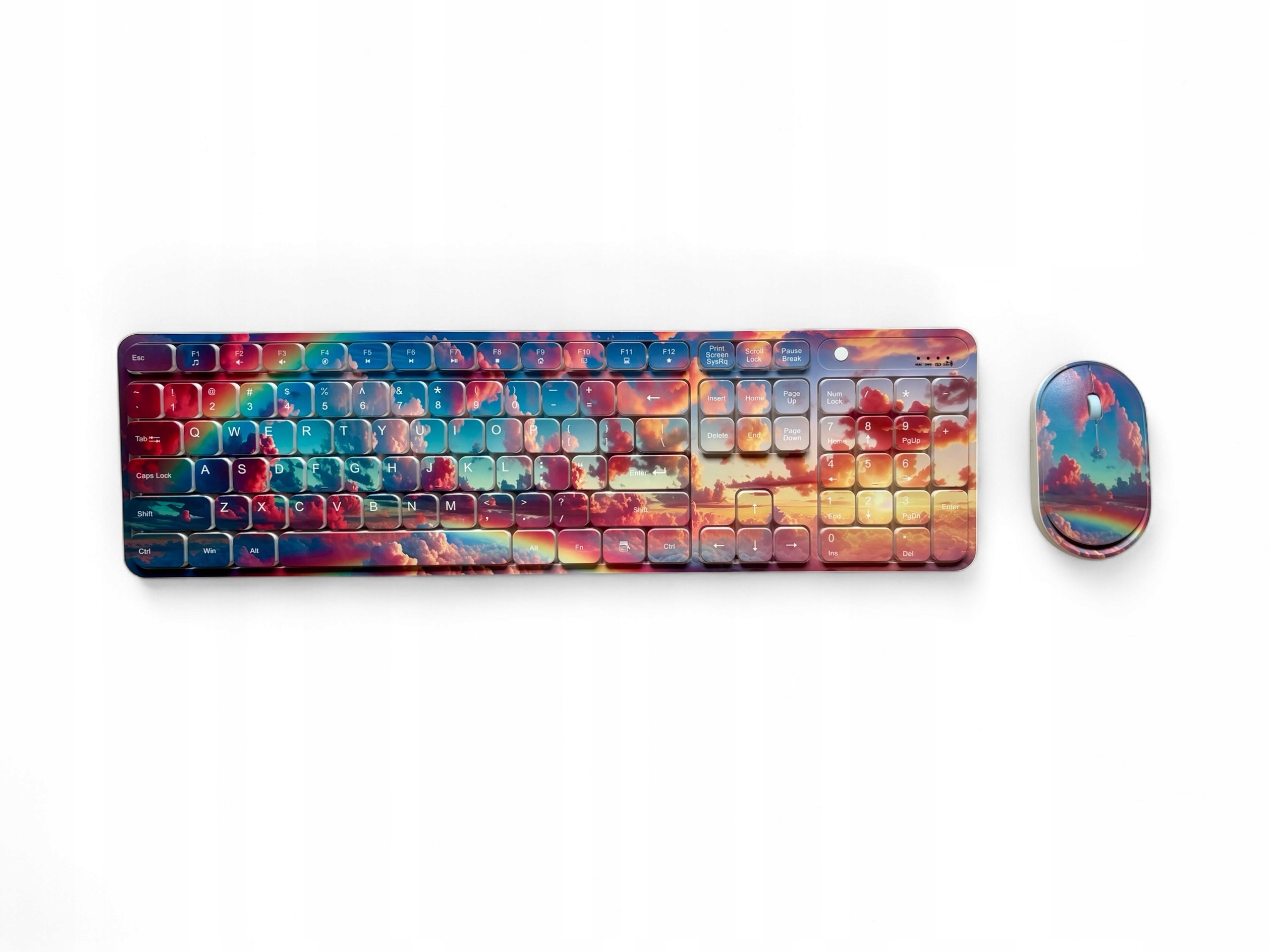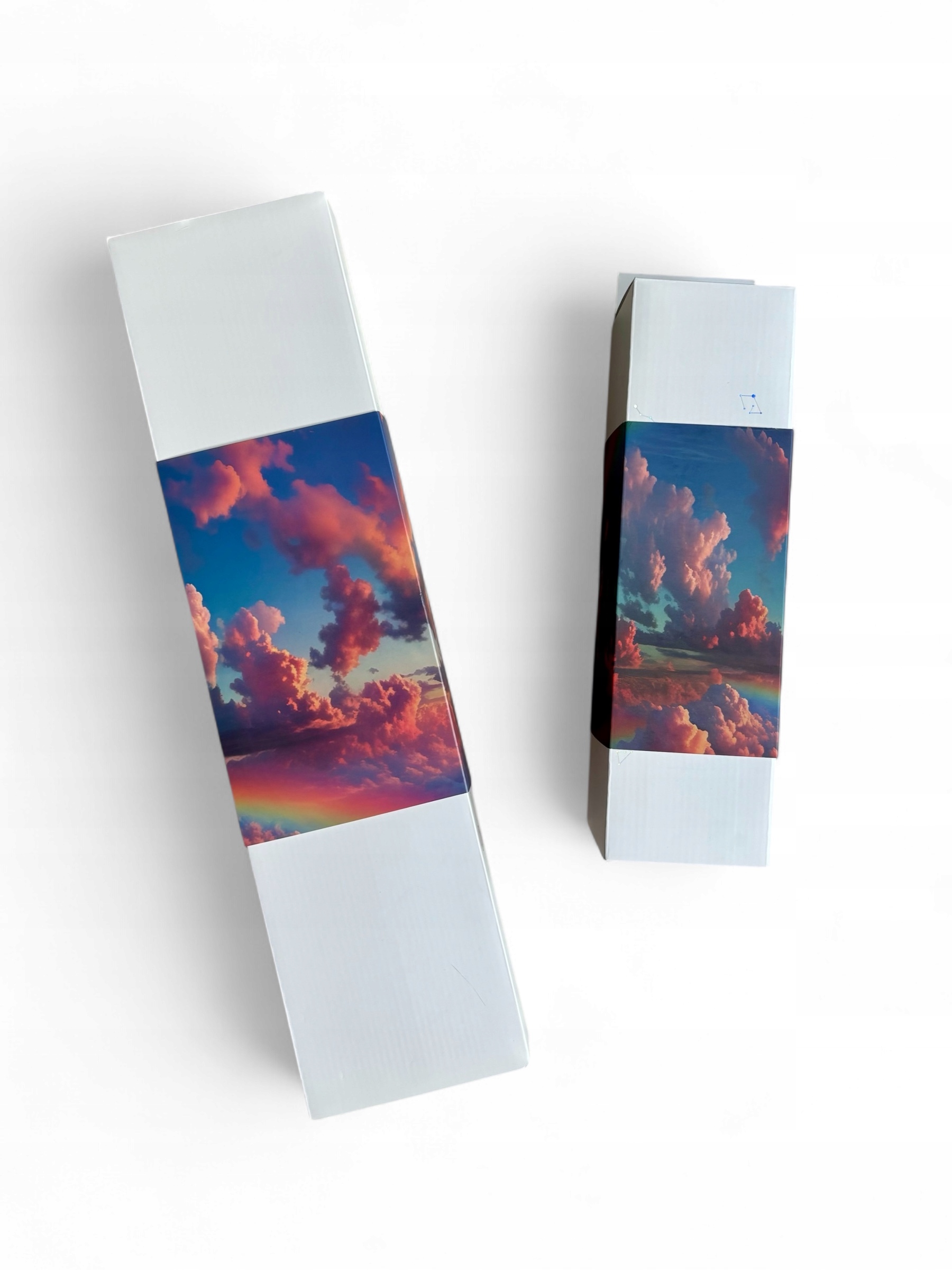 ✅ Attractive print - a colorful panorama of the sky with clouds, sunset and rainbow attracts attention and gives each position a unique atmosphere