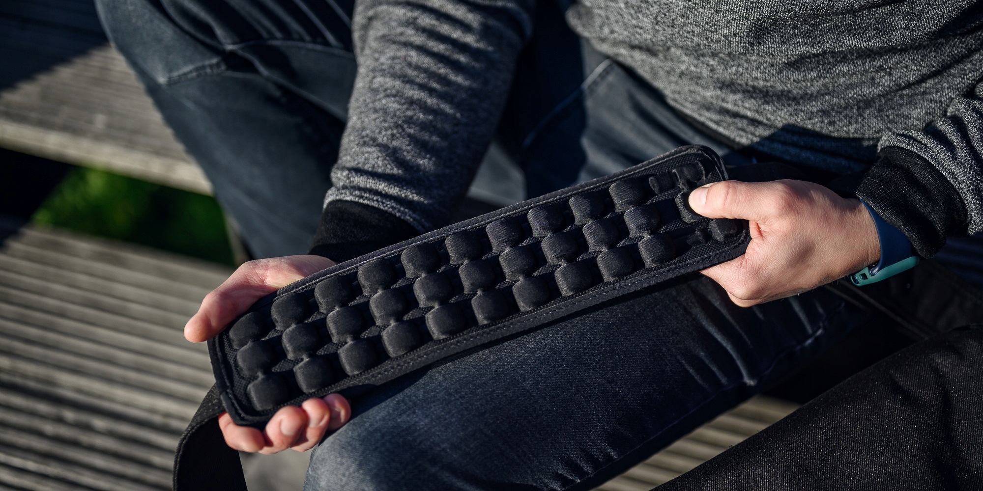 Humanas Air Cushion R3 создан для большего комфорта при ношении больших сумок, чемоданов, подсумков и чехлов, оснащенных плечевым ремнем. Благодаря этому нагрузка станет менее ощутимой, а повседневные поездки станут комфортнее. Это решение также помогает избежать натираний и ссадин. Дополнительная защита также продлит срок службы самих ремней. Подушка оснащена 30 воздушными камерами, заполняемыми при помощи специального механизма, не требующего продувки или использования насоса. В сложенном виде планшет занимает меньше места, чем внешний аккумулятор, поэтому его всегда можно носить с собой!