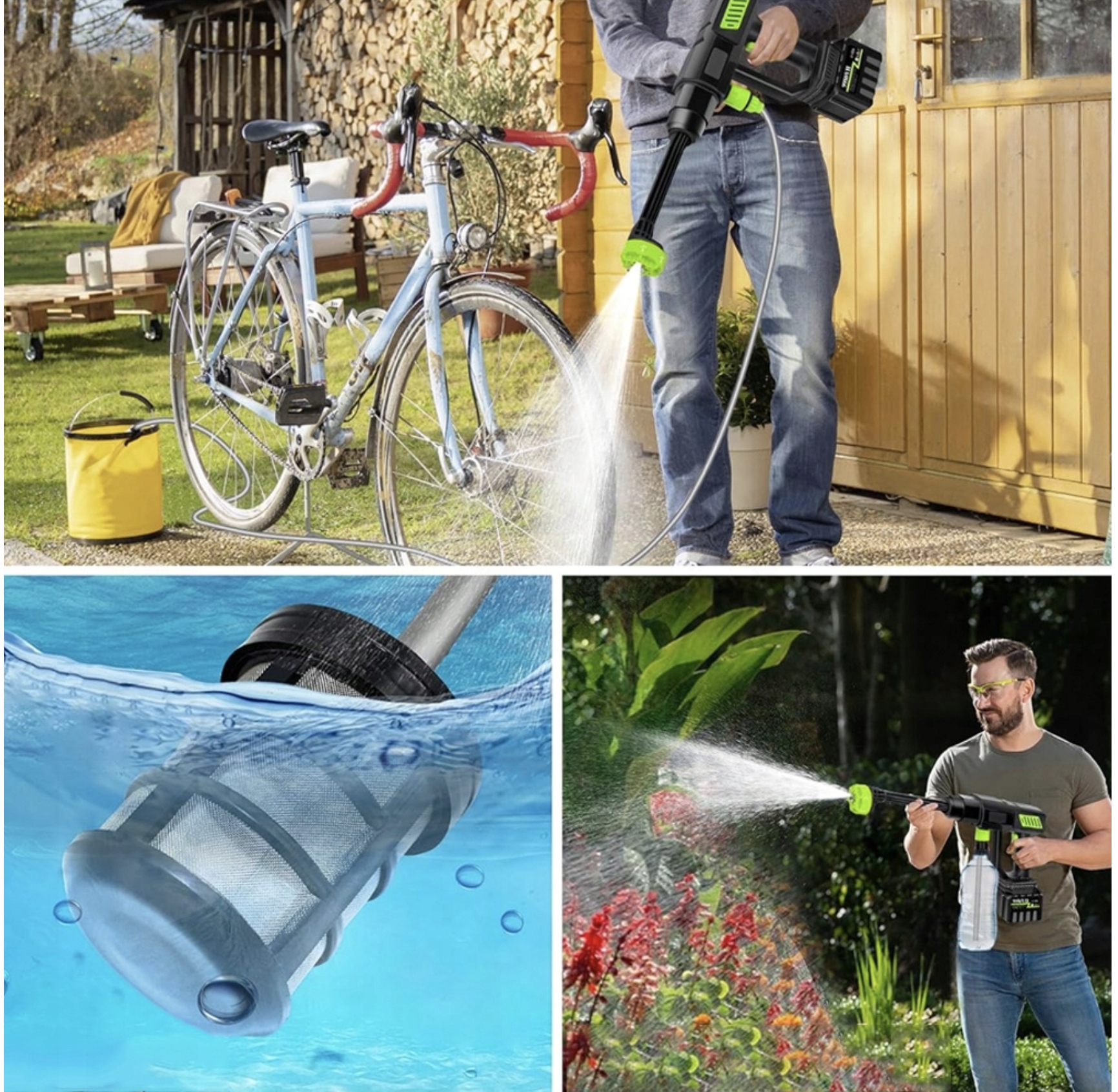 ➡ благодаря сильному рабочее давление до 30 бар, стиральная машина эффективно удаляет грязь, пыль и отложения со всех поверхностей. Идеально подходит для стирки автомобилей, садовой мебели, фасадов и террасов. Беспроводная технология дает вам полную свободу - вы моются везде, где хотите, когда хотите!
