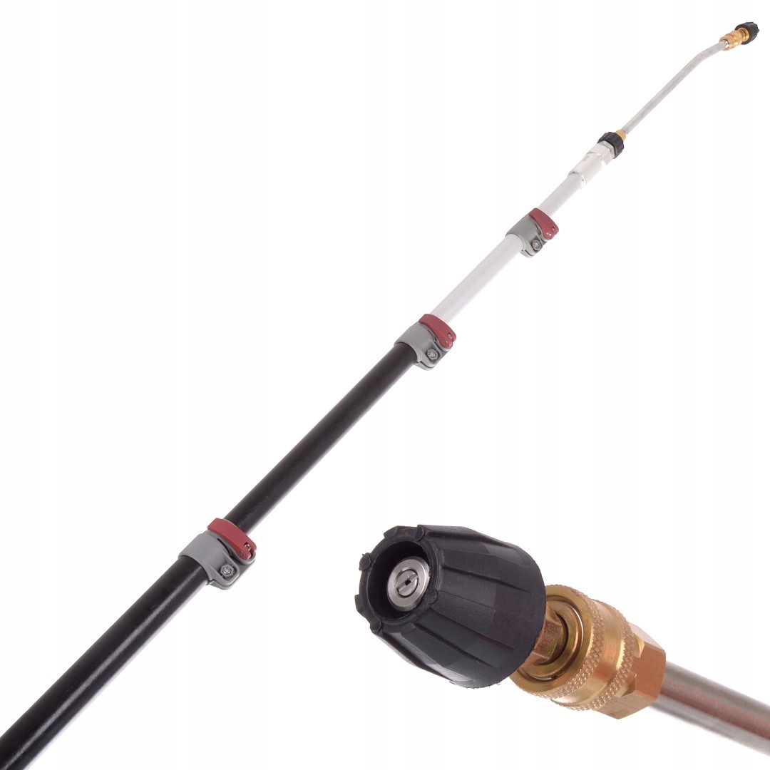 Телескопическая насадка - идеальное решение для людей, которые используют мойку высокого давления не только для мытья автомобилей или террас, но и для мытья более высоких мест, таких как крыши, перекрытия, фасады и т. д. Представлено Копье имеет прочное давление пистолет размещен таким образом, чтобы работа была максимально безопасной и комфортной. В комплект входит насадка с широким углом струи и крепежный ремень.