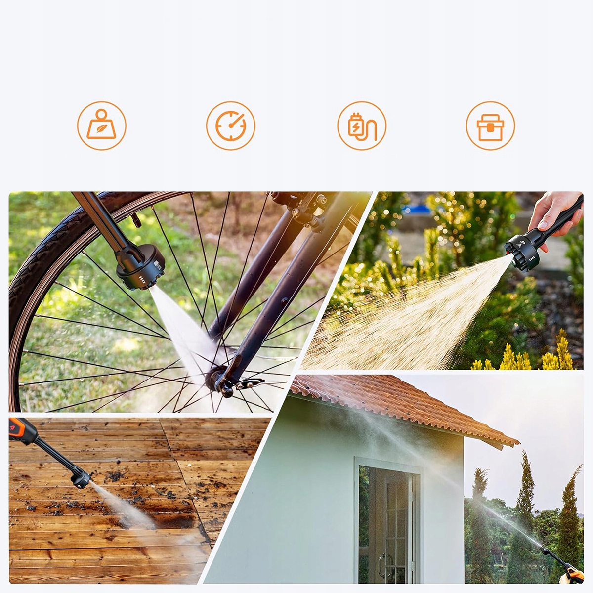 💦💦 💦💦 батарея высокой дальности, мобильная батарея батареи с высоким давлением 150 бар -бесщеточный двигатель с аккумулятором 20 000 мАч для автомобиля, террасы, окна, садовый ирригация (черный -оран) 💦💦💦 h1>