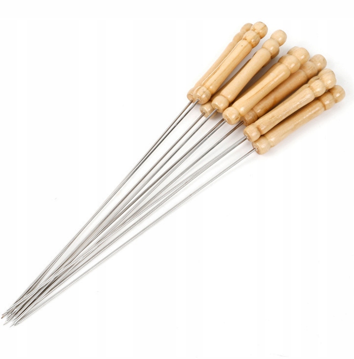 Шампуры изготовлены из нержавеющей стали с острым кончиком, высокое качество обеспечивает длительное использование. деревянная ручка с противоскользящим профилем.