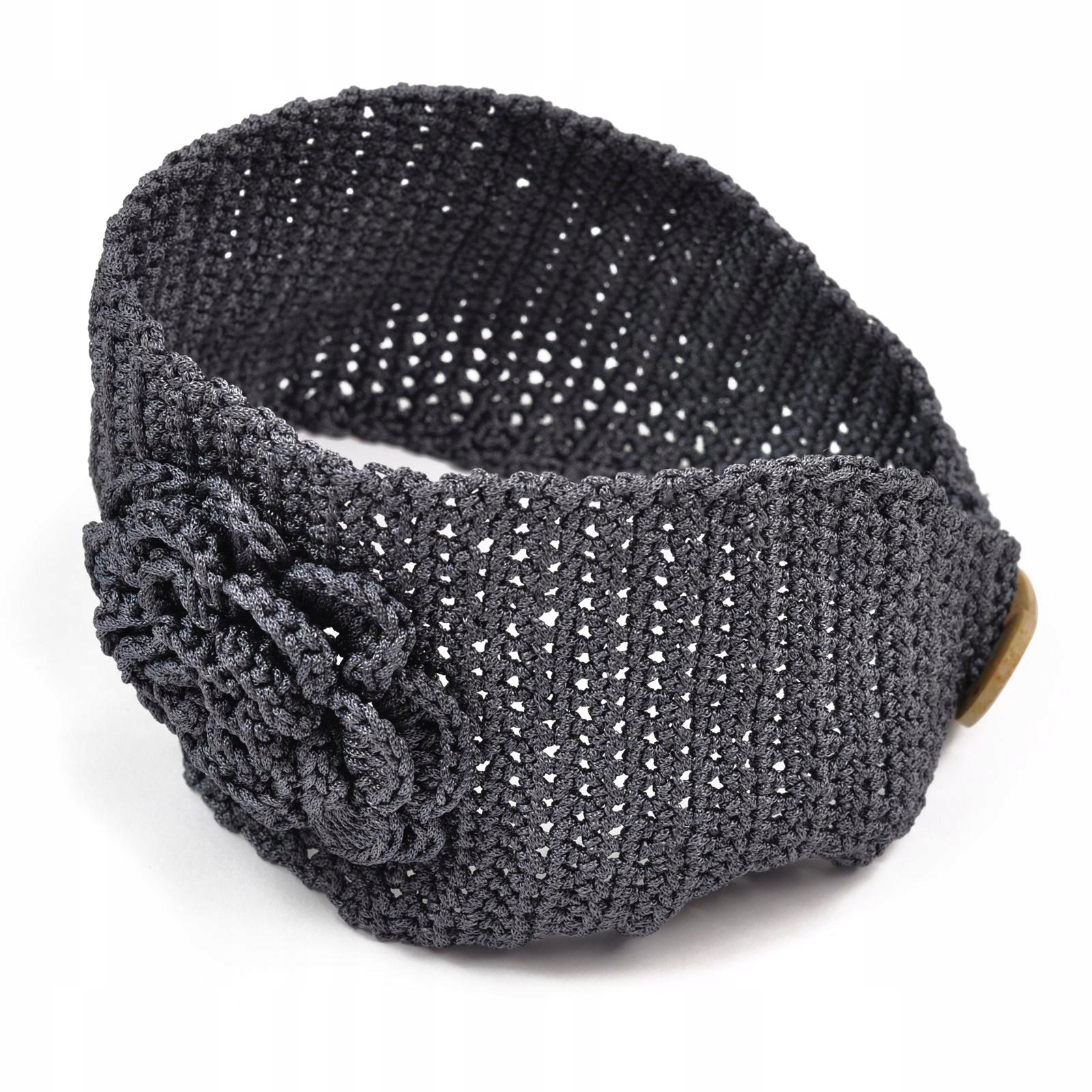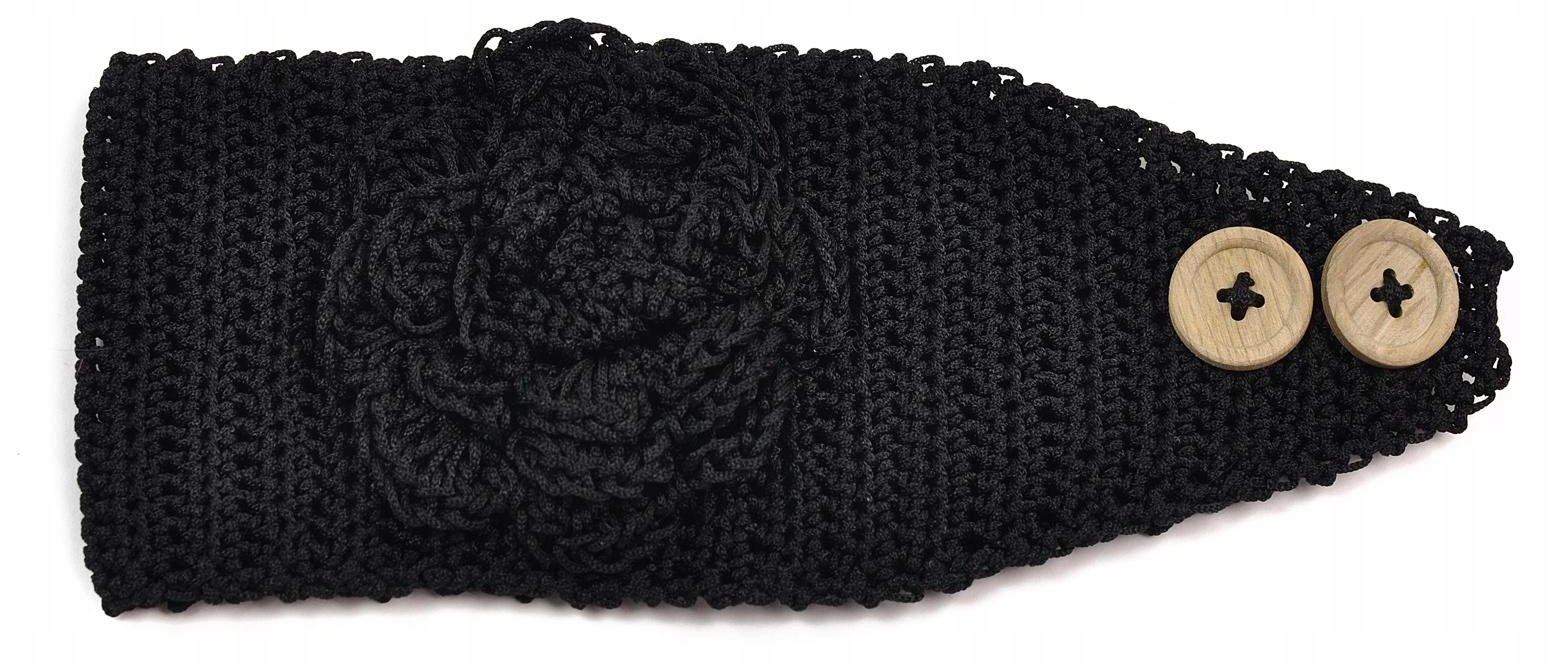 Красивая вязаная повязка на голову с розой.