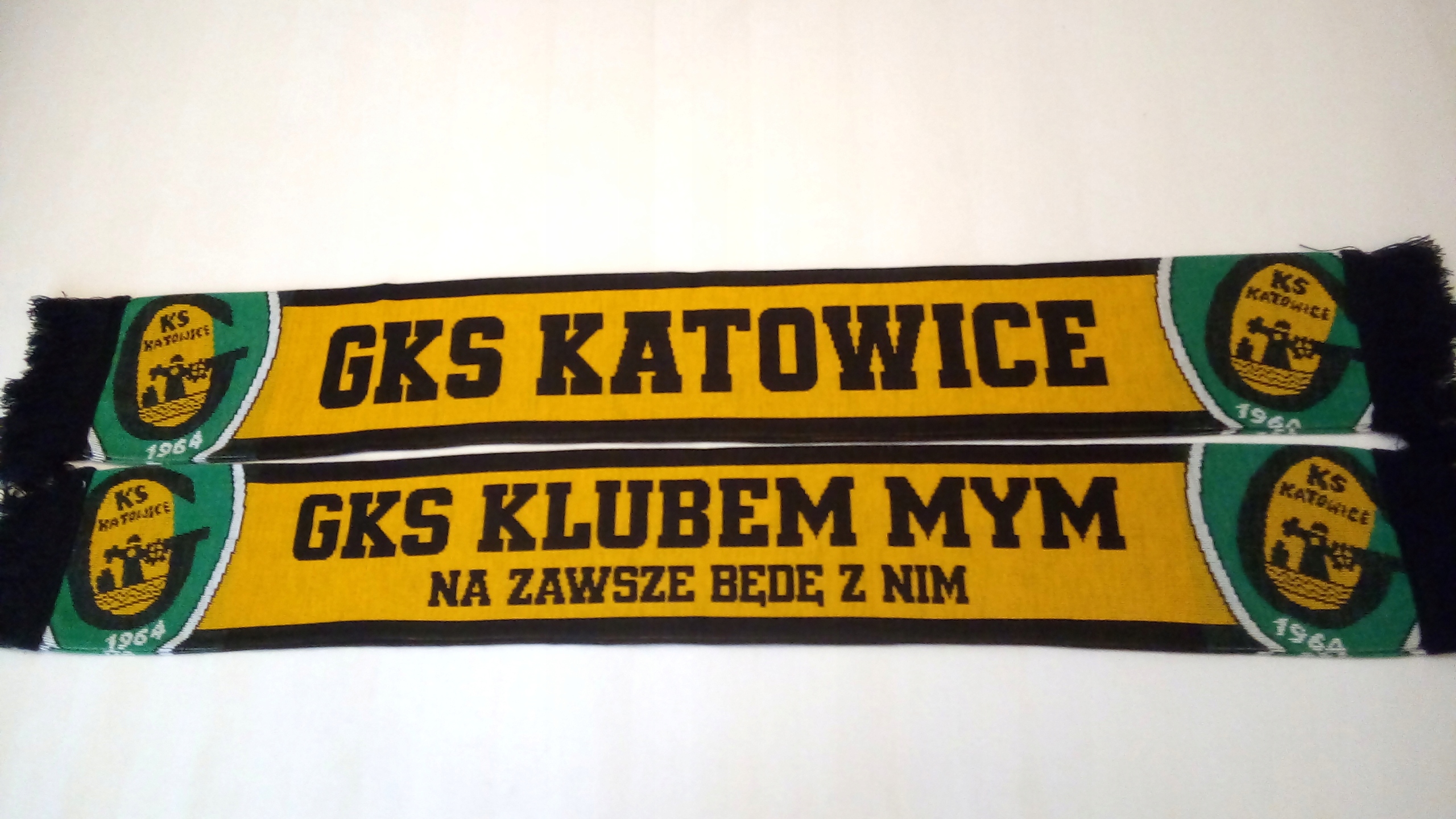 ШАЛФ, GKS KATOWICE ШАРФ - GKS KLUBEM MYM - ДВОСТОРОННИЙ, В'ЯЗАНИЙ.