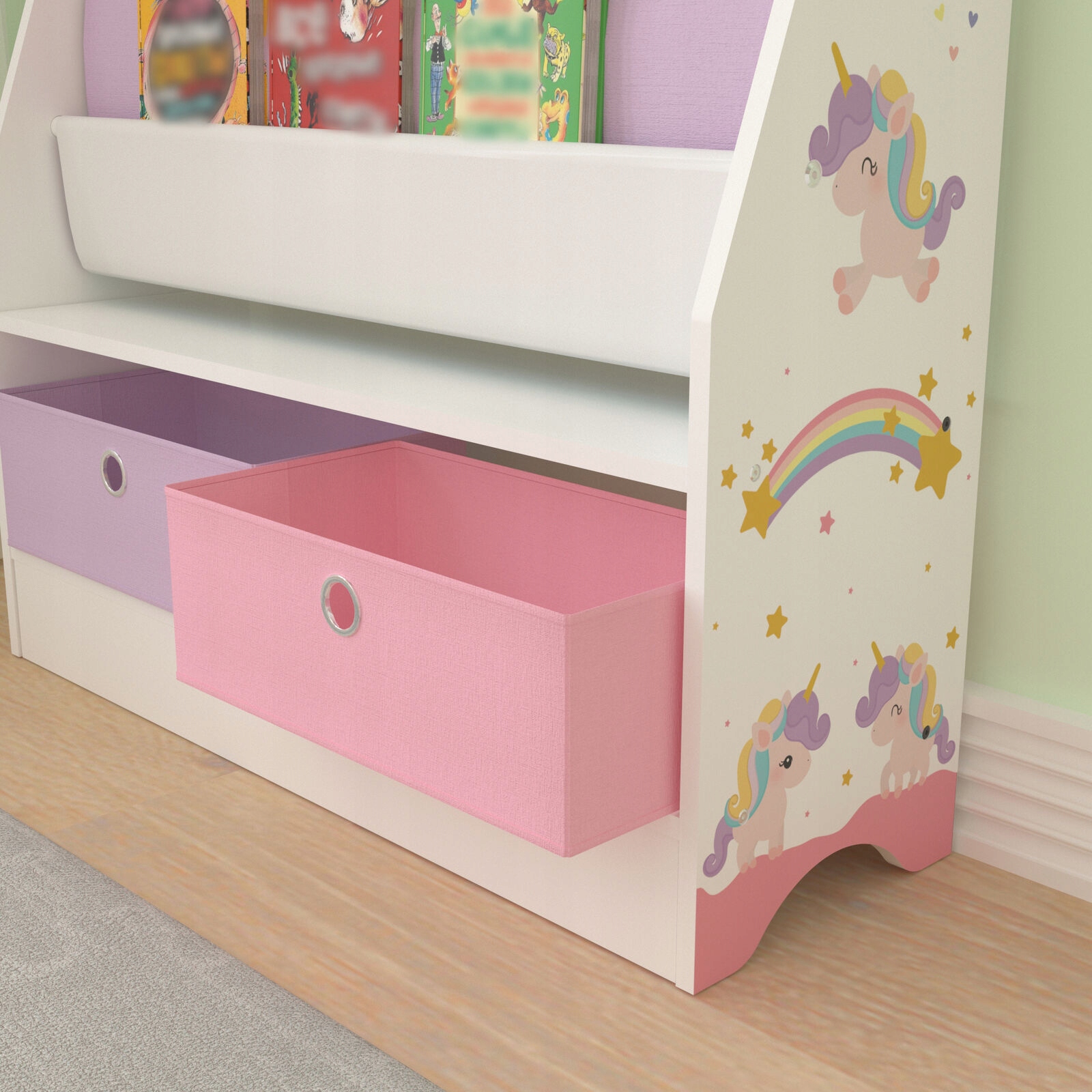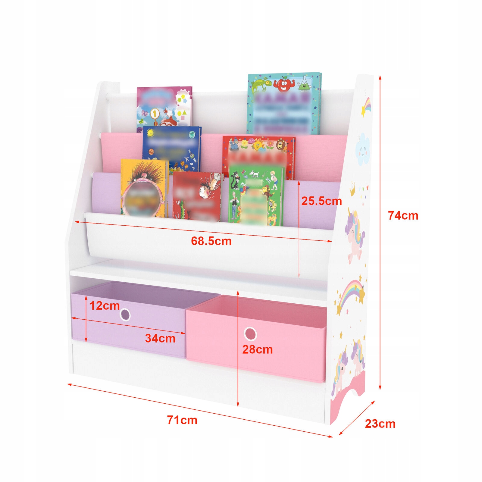Идеально подходит для детской комнаты и обеспечивает достаточно места для хранения, например, книг или игрушек, благодаря три открытых отделения и два нижних съемных ящика.
