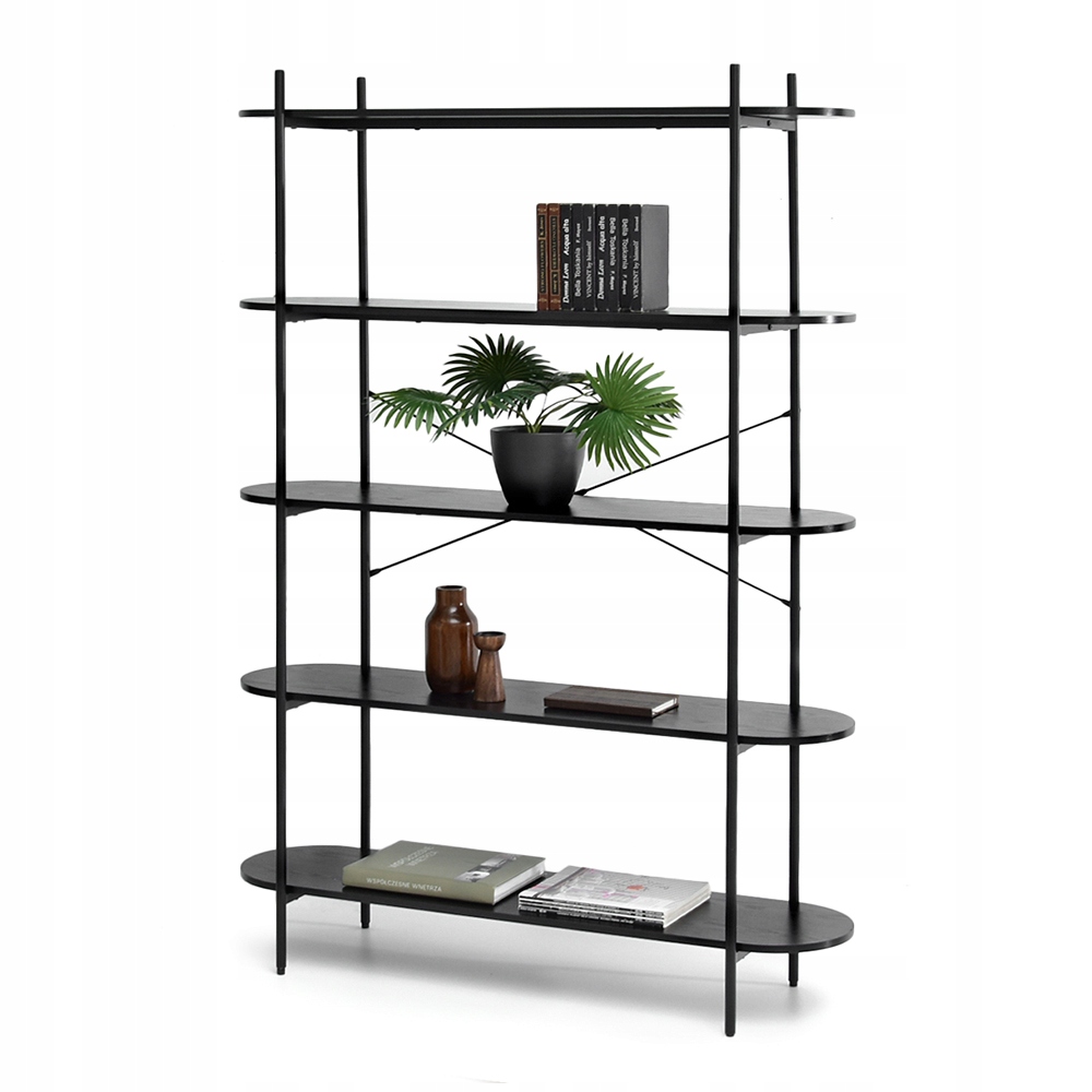 ЧЕРНЫЙ ВЫСОКИЙ КНИЖНЫЙ ШКАФ ДЛЯ ГОСТИНОЙ, ЛИНАС, ЧЕРНОЕ ДЕРЕВО
