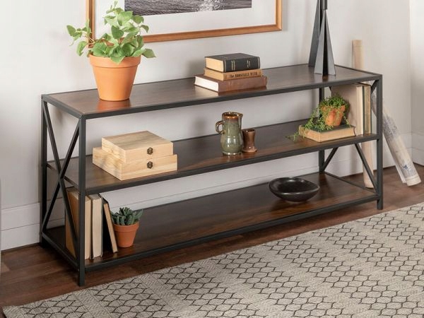 Благодаря прочному металлическому каркасу и элегантной обработке под дерево, выполненной из высококачественной -качественная доска, этот предмет мебели станет надежным местом для всех ваших книг, безделушек и украшений, а также дополнит любой домашний офис, прихожую, гостиную или спальню.