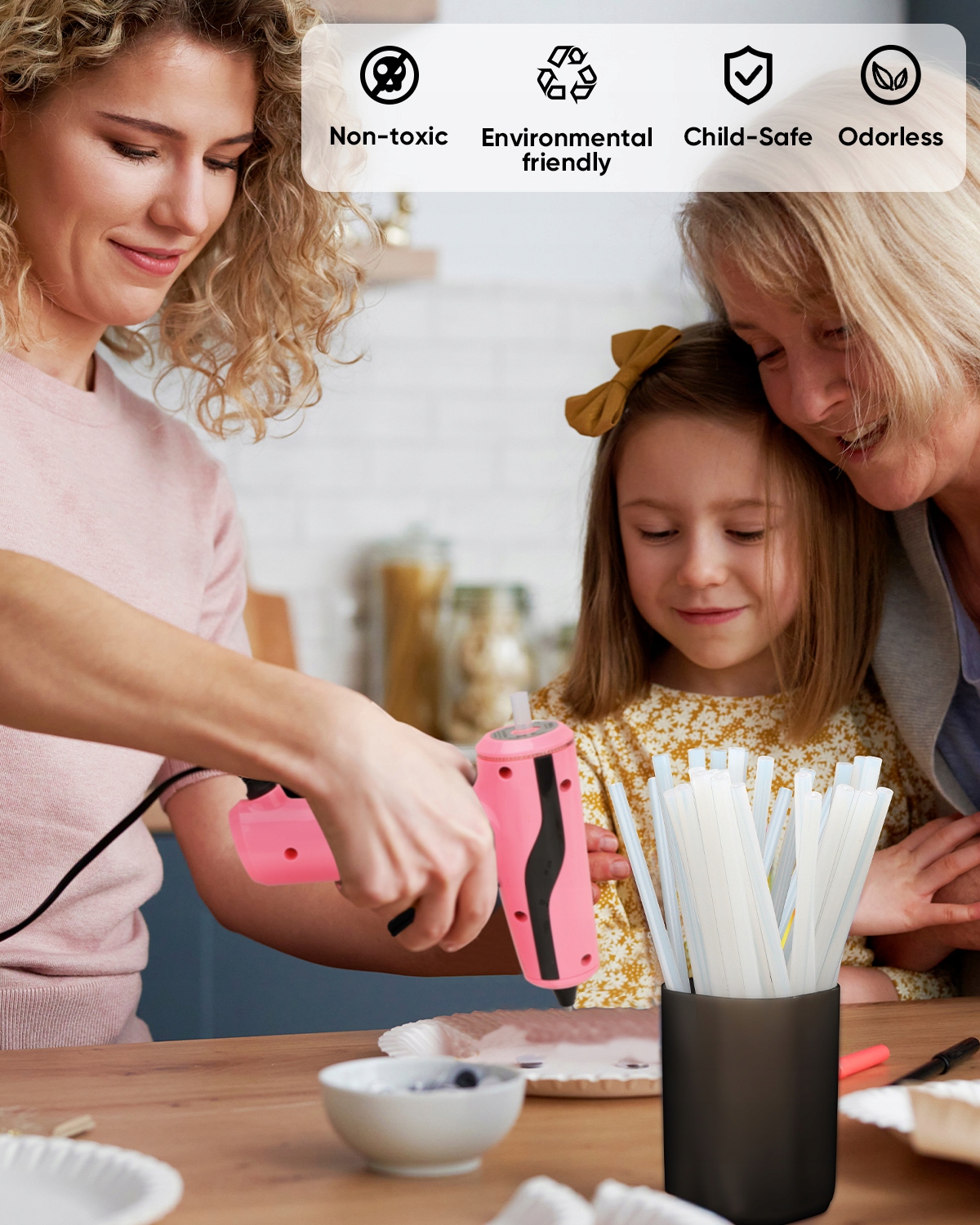 - 【100 клеевых стержней в комплекте】 В комплект входят 100 безопасных для детей мини-клеевых стержней размером 7 x 200 мм, совместимых с большинство клеевых пистолетов на рынке.