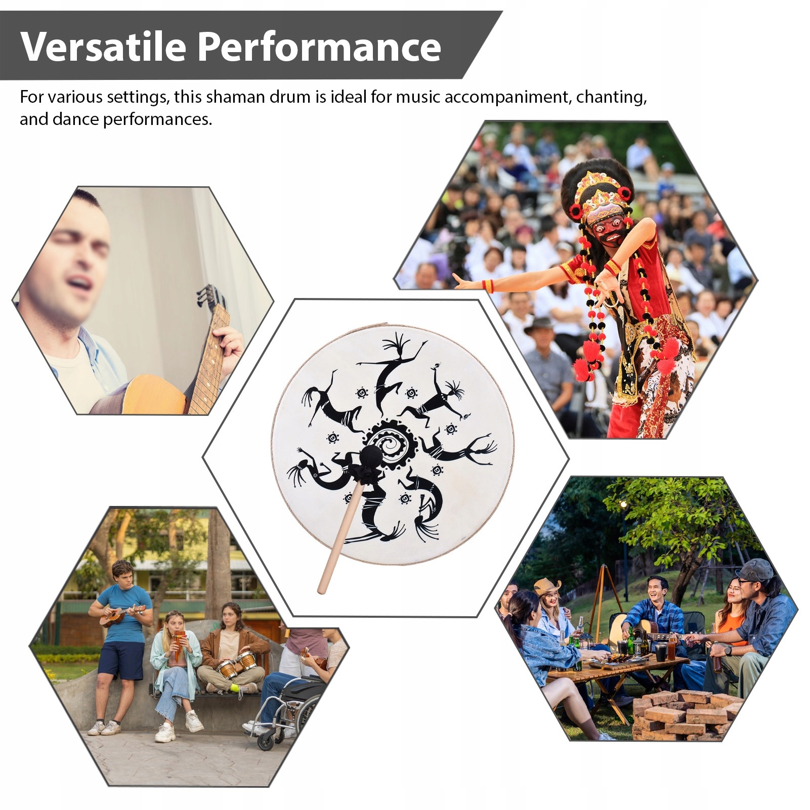 2. Универсальное исполнение: этот шаманский бубен идеально подходит для музыкального сопровождения, пения и танцевальных представлений в различных условиях. Благодаря громкому и яркому звуку он подходит как для встреч на открытом воздухе, так и для интимных встреч в помещении, оживляя любое мероприятие.