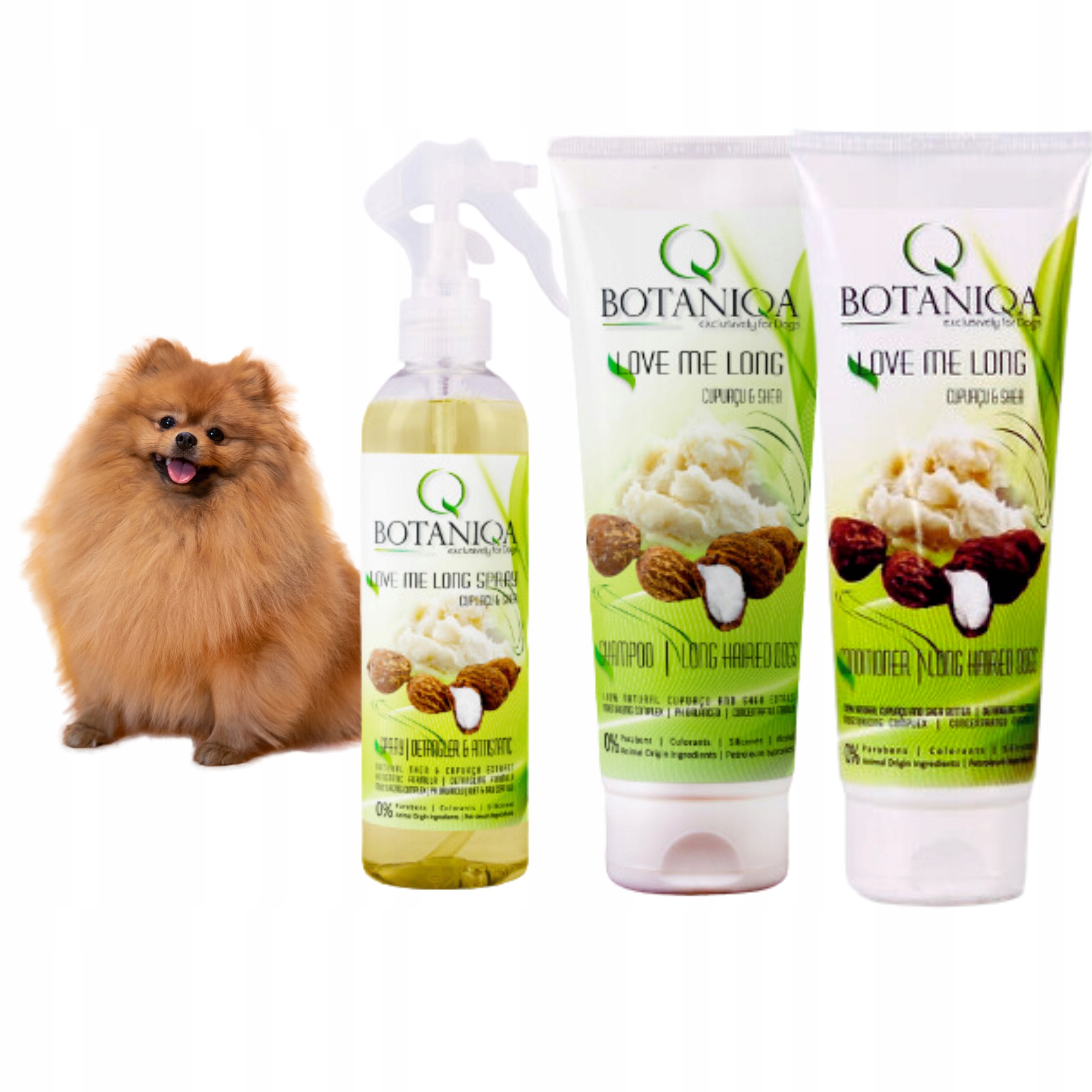 Botaniqa Love Me Long Spray антистатический спрей, облегчающий расчесывание волос Detangler & Antistatic. Спрей Love Me Long создан для облегчения ухода за волосами между ваннами. Высокоэффективный антистатический спрей-распутчик, обогащенный экстрактами купуасу и ши, питает, облегчает расчесывание, предотвращает спутывание волос и потерю влаги в шерсти. Его можно использовать как нейтрализатор «нежелательных» запахов. и утяжелять шерсть у длинношерстных собак. Оставляет приятный, нежный аромат. Его можно использовать как на сухой, так и на влажной одежде.
