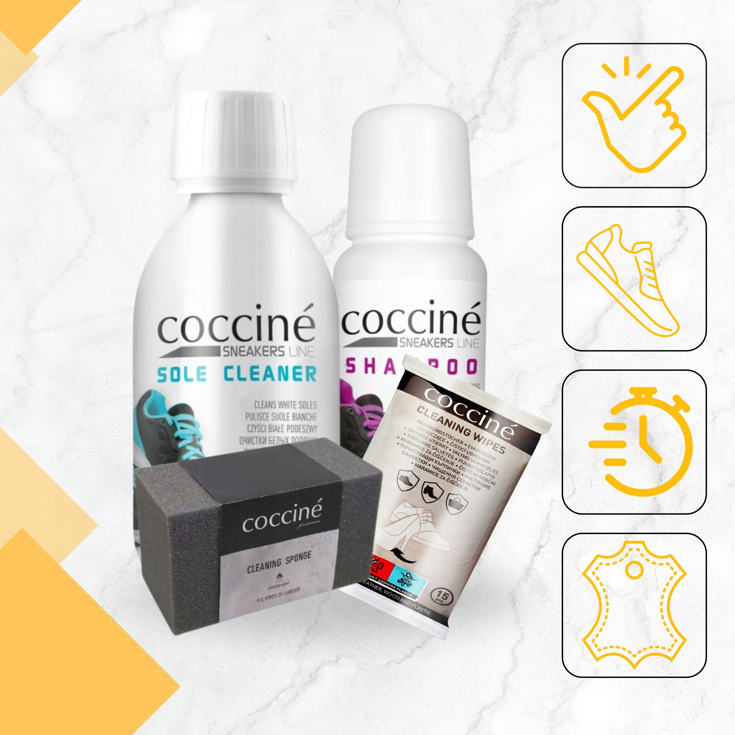 Coccine Shampoo Sneaker Cleaner – незаменимый препарат для чистки кроссовок без воды. Он мягко и эффективно удаляет загрязнения с верха обуви, заботясь об их внешнем виде и состоянии. Благодаря удобной упаковке с губкой уход за обувью становится быстрым и удобным!
