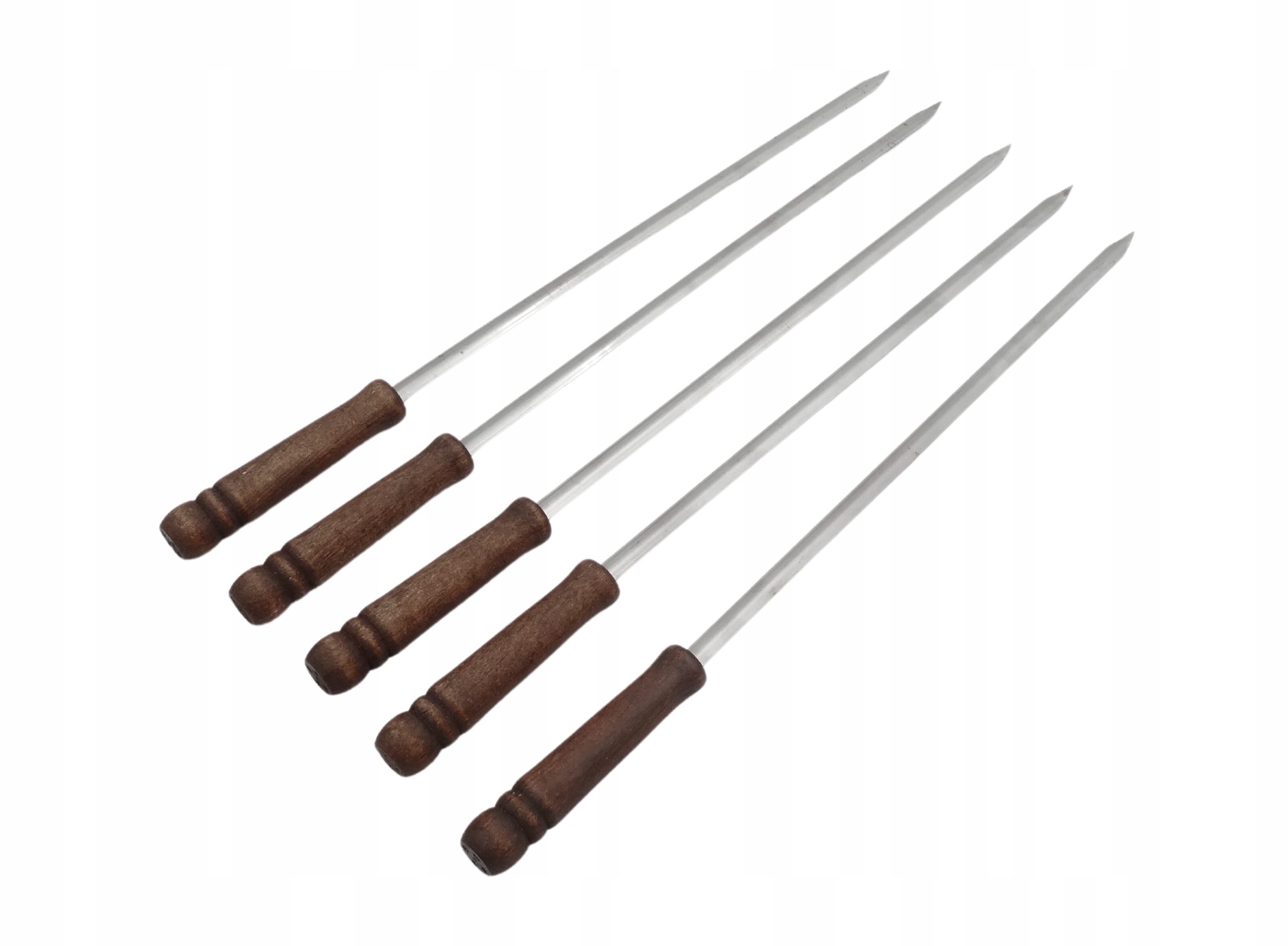 Шампуры имеют острый кончик для вставки и деревянную ручку, которая гарантирует надежный захват во время жарки и гарантирует безопасность от ожогов при вращении шампура.